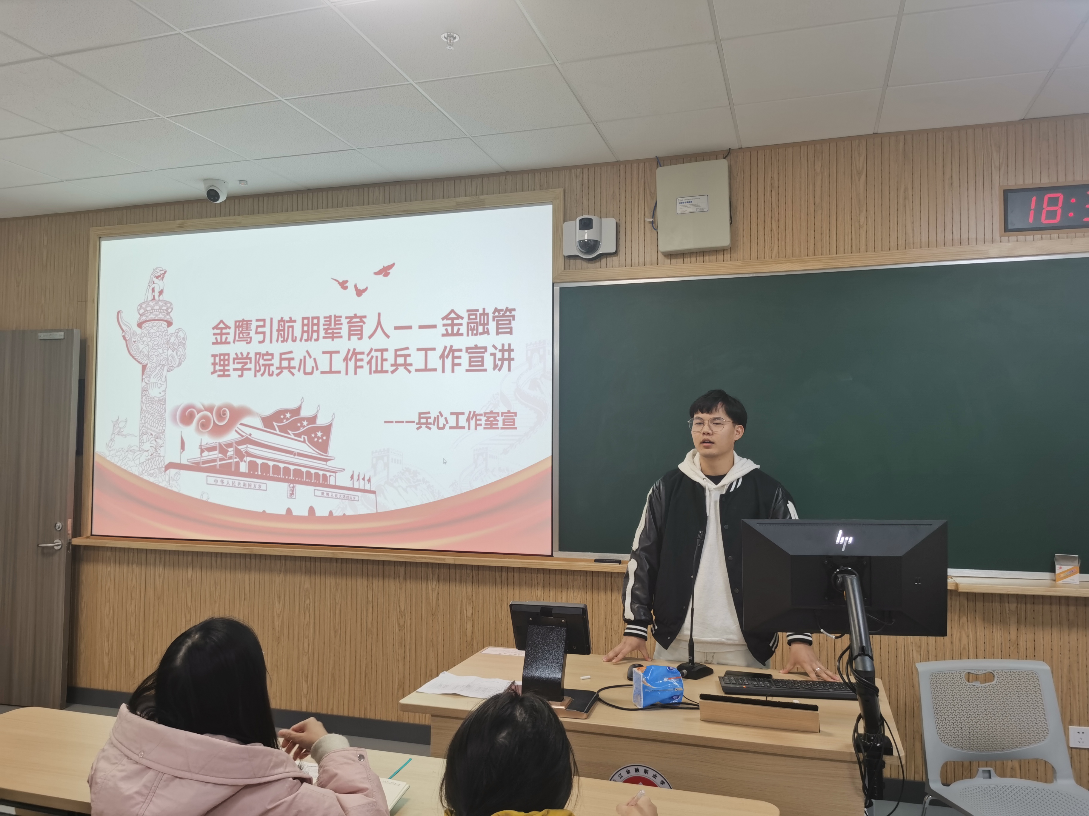 金融管理学院兵心工作室的退伍大学生士兵们利用早晚自习的时间到各班开展了征兵宣讲工作。此次宣讲围绕参军的基本条件、基本流程、入伍福利以及未来发展四方面展开。退伍兵详细讲解了对年龄、视力、身高和体重等要求,以及每年12月31日前,有应征意向的大学生可通过“全国征兵网”填写个人信息,再凭本人身份证和本人毕业证或者学生证在规定时间报名到指定地点参加学校所在地县级兵役机关组织的初审初检,最后批准入伍。在入伍优惠政策方面,向21级学生介绍了入伍后复学升学、经济补助、成长成才、就业安置等方面的优惠政策。除此之外,退伍士兵们提及如果想考公务员,去军校是一个非常明智的选择,当兵既可以保留学籍,又可以享受学费优惠以及额外补贴,且因地制宜。他们通过视频和图文的形式结合他们自身的经历给大家讲述了他们在部队的经历,让大家了解到了部队多姿多彩的生活。很多同学从小就有一个军人梦。