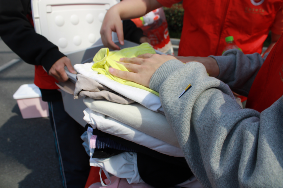 活动当天,大家都以极高的热情积极捐赠,陆陆续续有同学拎着打包好的旧物前来募捐。收集到的每一件旧物都保持干净、整洁,大家献出自己的爱心,为他人传递温暖,涓滴之水成海洋,颗颗爱心成希望。