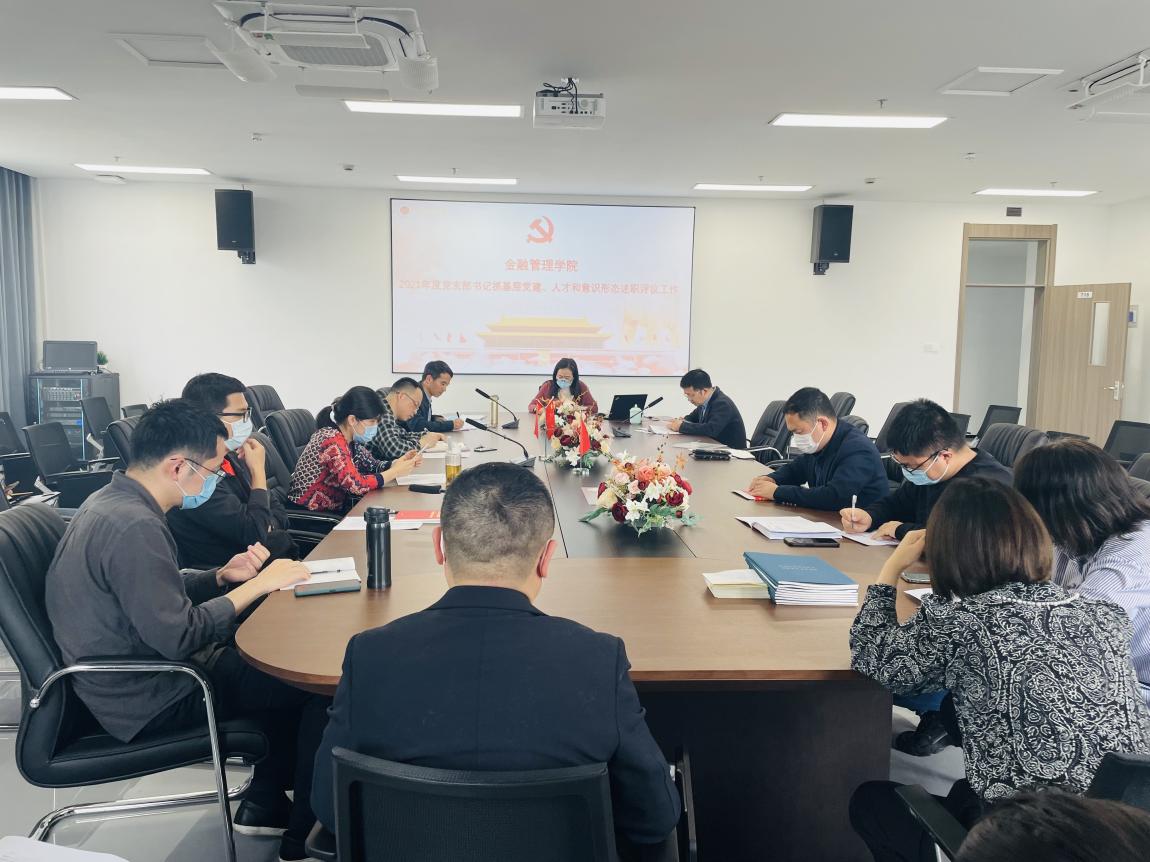 为深入学习贯彻习近平新时代中国特色社会主义思想和党的十九届六中全会精神,按照新时代党的建设的总要求,推动全面从严治党向基层延伸,不断提高基层党建质量,根据学校党委组织部相关通知要求,金融管理学院党总支于3月16日下午在泰隆718会议室召开2021年度党支部书记抓基层党建、人才和意识形态述职评议工作。金融管理学院党总支委员、支部书记、支委参加会议。会议由金融管理学院党总支书记钱利安主持。