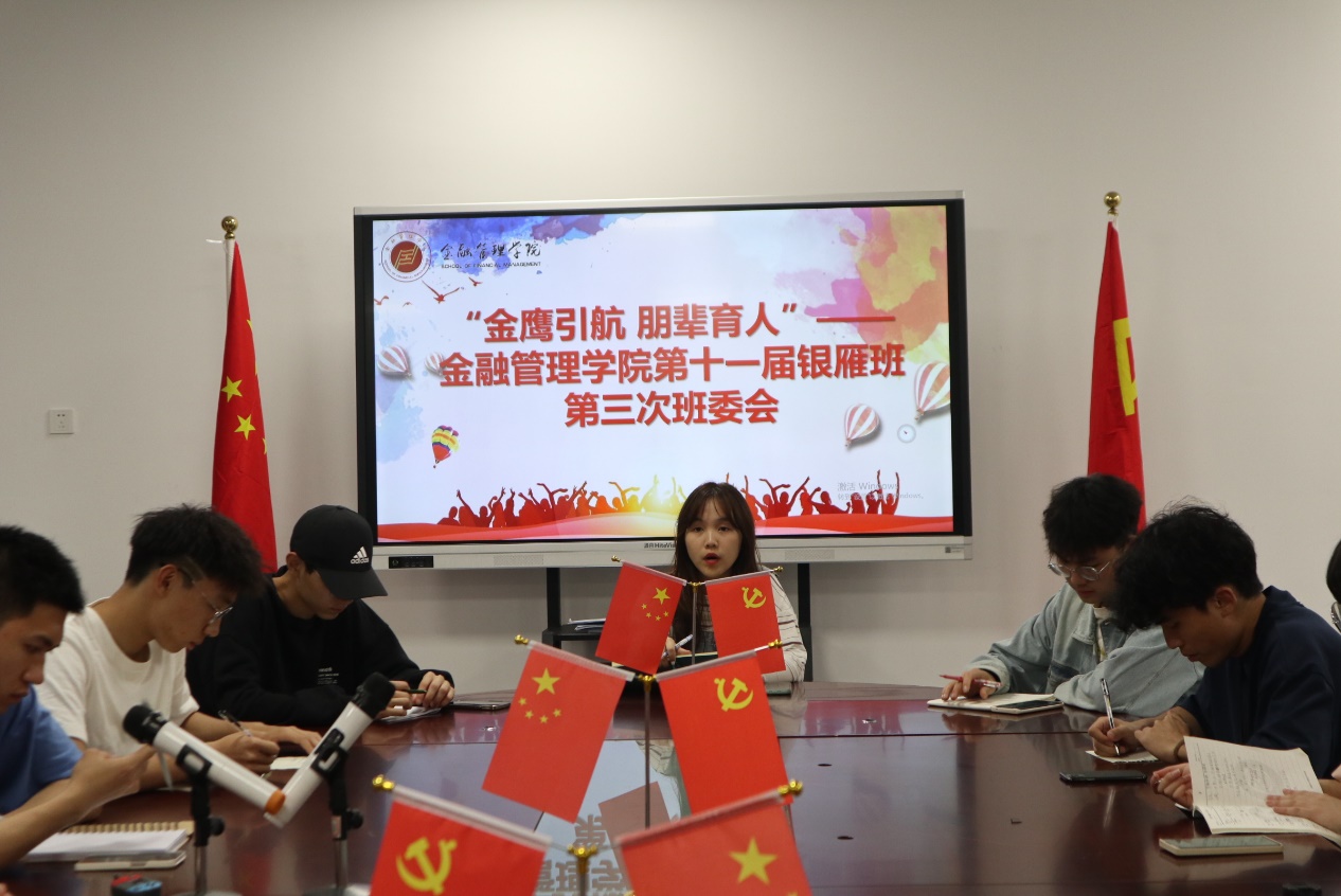 为总结近期银雁班工作,提高班委工作效率,明确银雁班未来发展方向。4月11日,金融管理学院第十一届银雁班于泰隆609召开第三次班委会,银雁班全体班委参加。