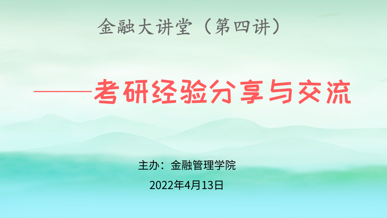 2022年4月13日下午,由金融管理学院主办的金融大讲堂第四讲之考研经验分享交流会在泰隆507教室召开。本次会议由金融科技应用专业郑莉琨老师主持,学院副院长吴金旺出席会议,金工19级、20级、21级以及金融学本科21级同学共计30余人参加会议。会议还邀请了现就读于宁波大学的金工16级王威威校友和被中国计量大学拟录取的金工18级潘浩然同学作为分享嘉宾。