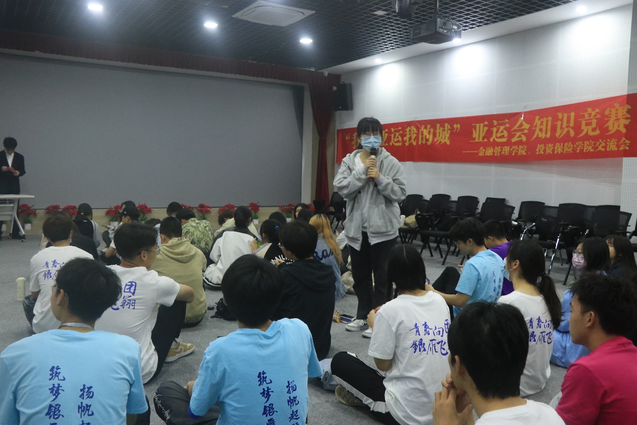 为迎接亚运到来,了解亚运会发展历程,弘扬亚运精神,丰富同学们的课余生活,增进银雁班同学之间的感情。4月30日上午,金融管理学院与投资保险学院银雁班于银星城举办“我的亚运 我的城”知识竞赛。