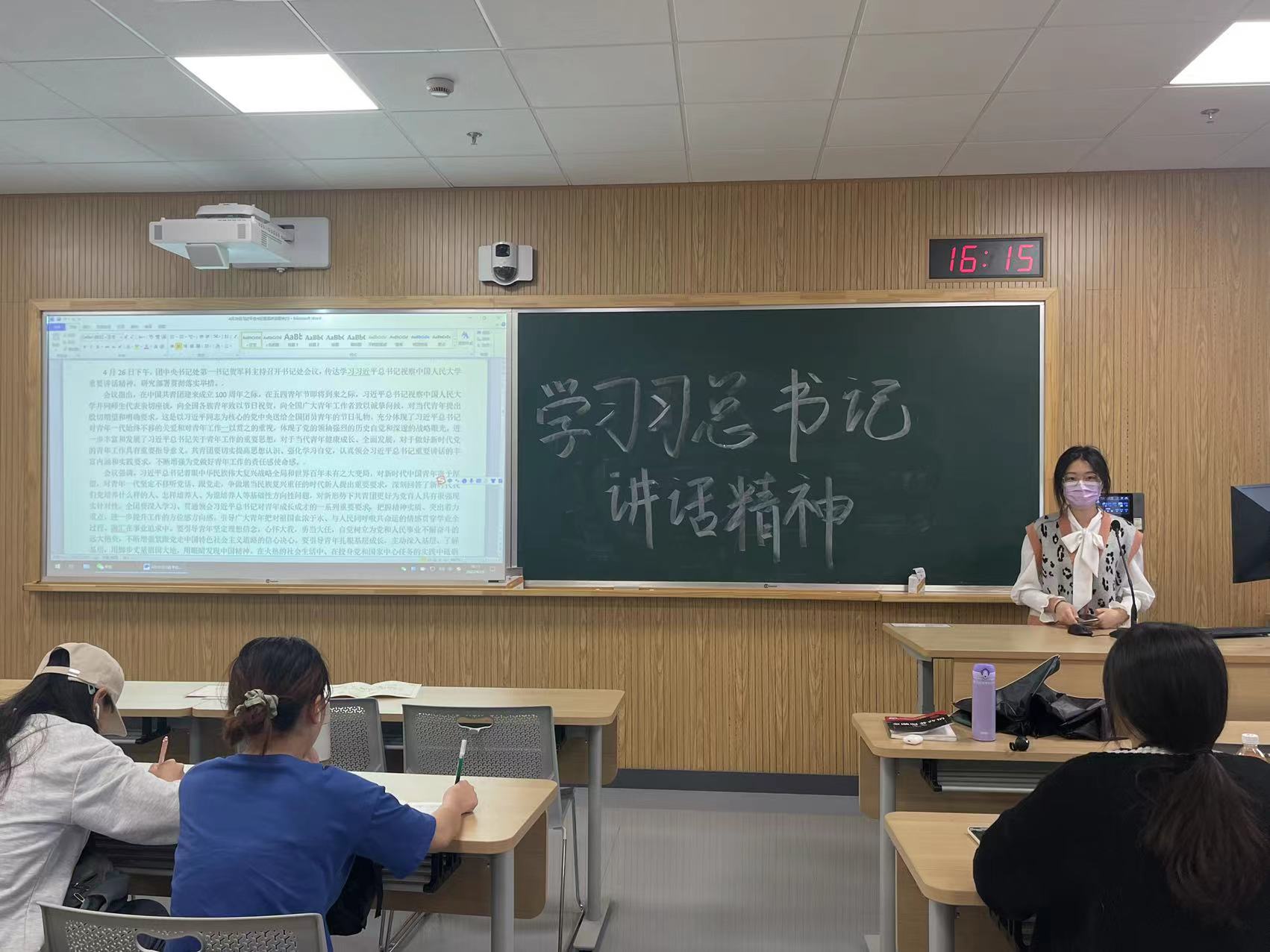 在4月28日下午,金融管理学院团总支组织召开21级正副团支书学习习近平总书记考察中国人民大学讲话精神会议,向团支书们传达学习习近平总书记视察中国人民大学重要讲话精神,本次会议由学院组织部邬可欣主持。