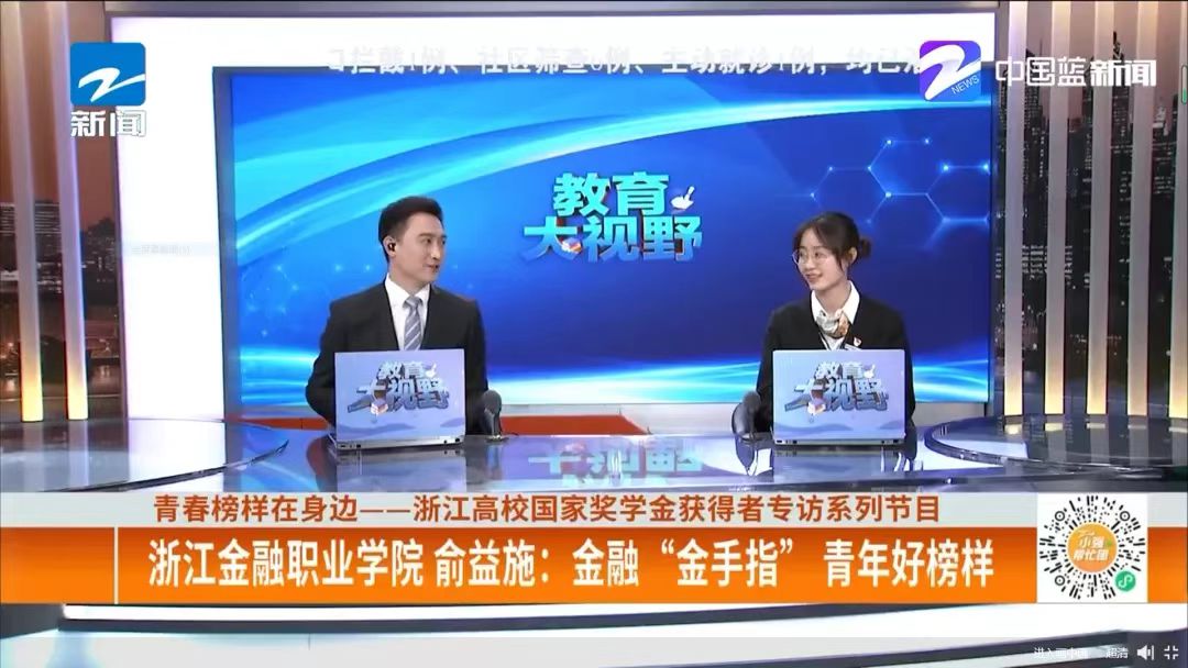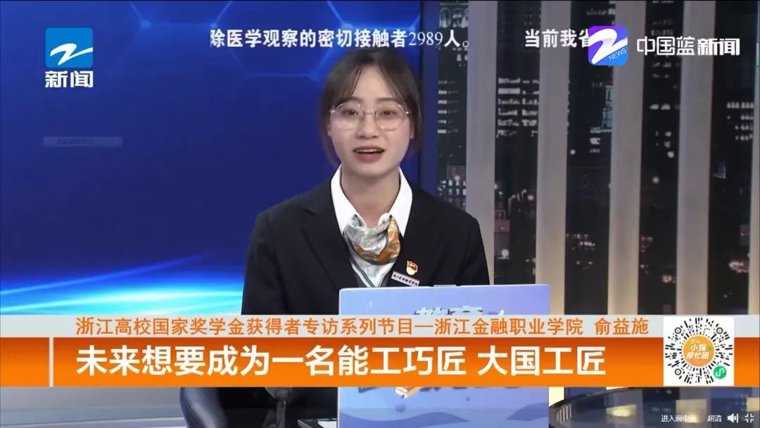 经过金融管理学院前期准备,不断打磨演播稿件以及与媒体紧密的衔接洽谈,4月8日,金融2010班俞益施在学院辅导员夏佳颖和石书敏的陪同下步入浙江广播电视集团教育科技频道的演播厅。5月1日,在“五一”这个特别的日子,浙江新闻频道报道我院金融2010班学子俞益施的采访,分享有关“金手指”不断前进的驱动力,展现她从职业教育中汲取精益求精的工匠精神、不甘平庸的拼搏精神。