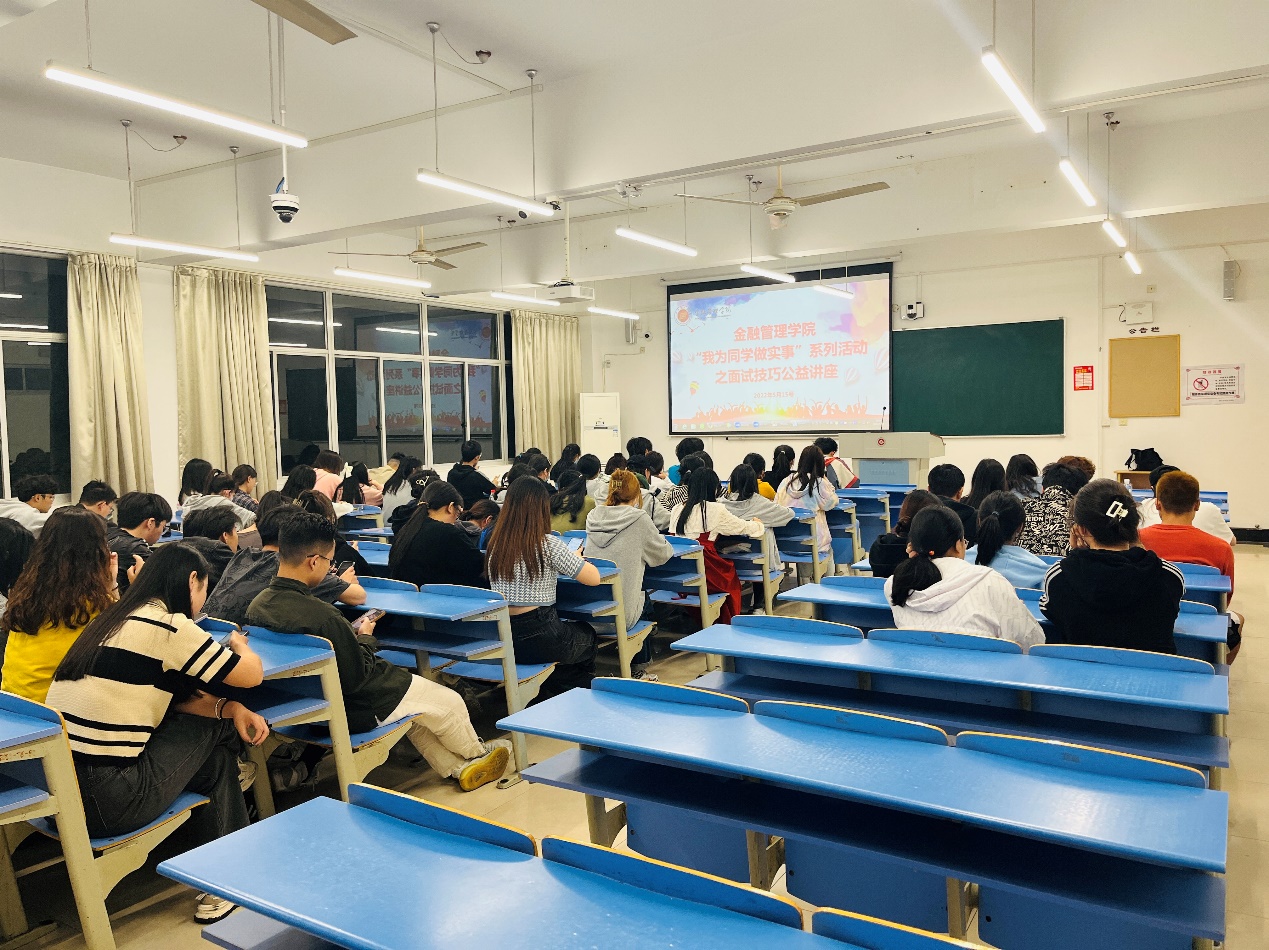 为更好地服务2022届学生就业工作、2023届学生订单班面试工作、2024届学徒班面试工作,提高同学们的就业竞争力。金融管理学院于5月15日晚上在8101教室开展“我为同学做实事”实践系列活动之——面试技巧公益讲座。本次讲座邀请到杭州联合银行天城支行行长严舒颖校友主讲,金融管理学院相关学生参加本次面试技巧公益讲座,讲座由学院学工办副主任宋春旗主持。
