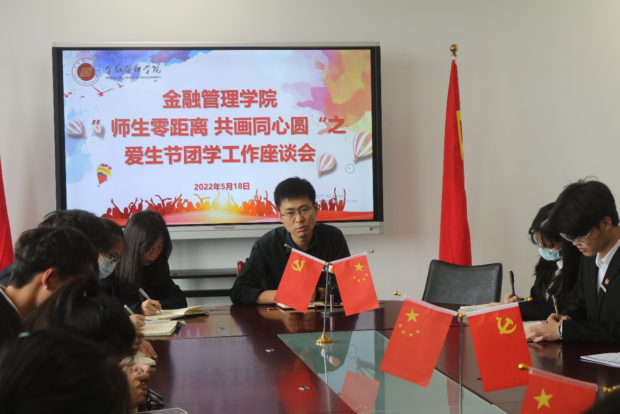 为进一步落实学校爱生传统,贯彻以生为本育人理念,同时加强团学干事对团学工作的了解,解决团学工作过程中出现的问题,金融管理学院团总支于5月18日在泰隆609会议室开展团学工作座谈会。金融管理学院团总支书记、学工办副主任宋春旗,学院团总支副书记余继超、学生会执行主席池一鸣以及部分团学代表参加次会议,座谈会由学院团总支副书记余继超主持。