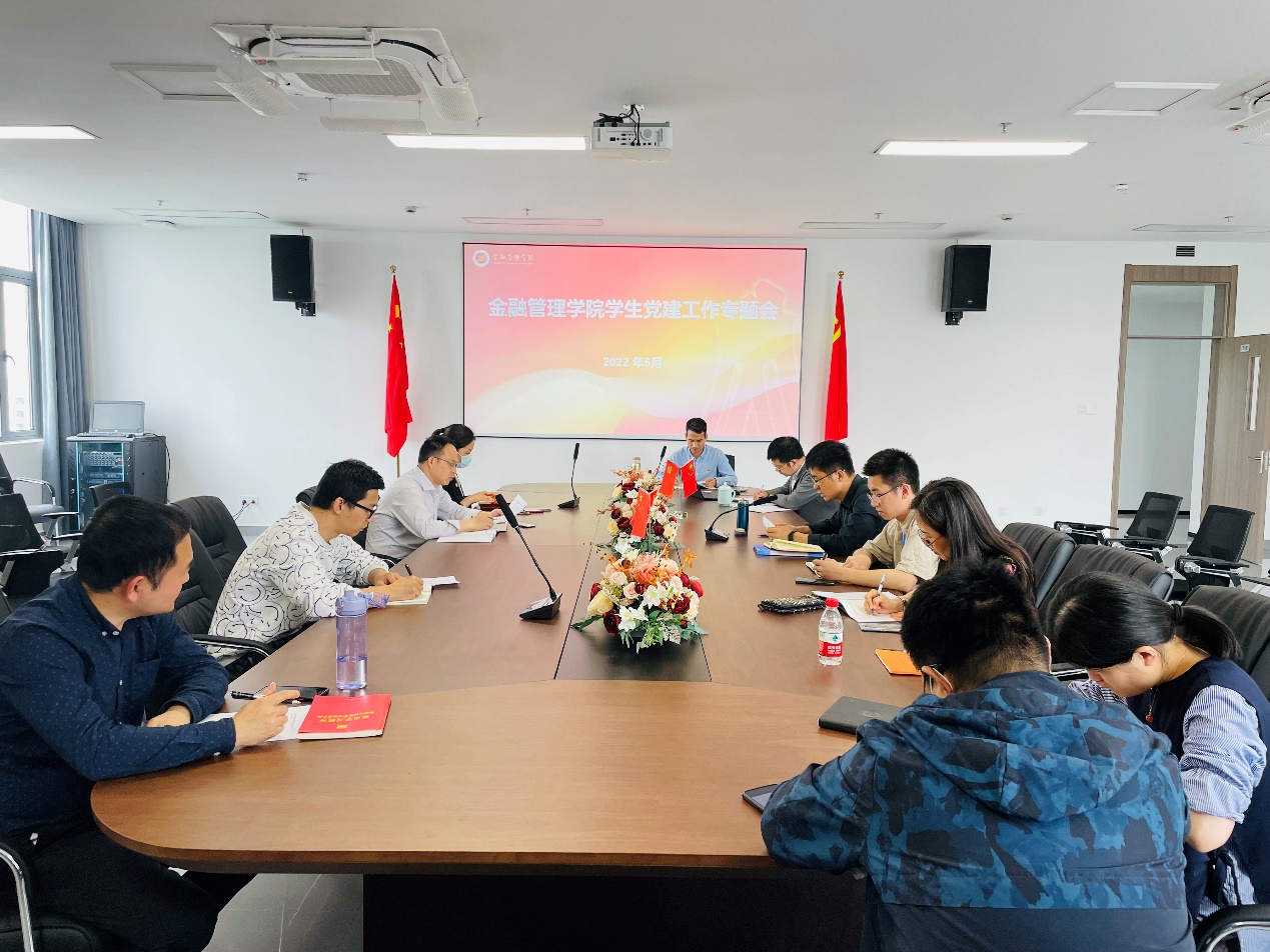 为进一步加强我院学生党员发展和教育管理服务工作,确保学生党员发展质量,金融管理学院党总支于5月18日下午,在泰隆718会议室召开学院学生党建工作专题会,金融管理学院党总支委员、支部书记、组织员参加会议,会议由金融管理学院党总支书记、副院长钱利安主持。