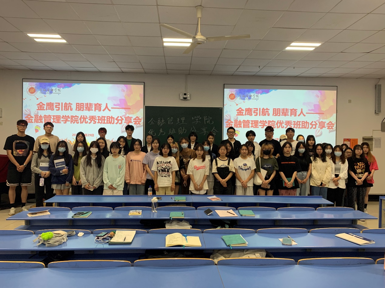 为帮助各位领航班的同学提升辅助管理能力,金融管理学院于2022年5月29日晚在8119教室开展金融管理学院首届领航班暨新生班助辅助培训系列活动第三讲之“金鹰引航 朋辈育人” 2021级优秀班助分享会。金融207蔡慧慧、金融202汪诗雨、联合学徒201林子源、互金203蒋主宁、金工201方飞越和农金201吴思思共6位21级优秀班助作分享人,金融管理学院首届领航班全体成员参加此次活动。本次活动由金融管理学院团总支副书记余继超主持。