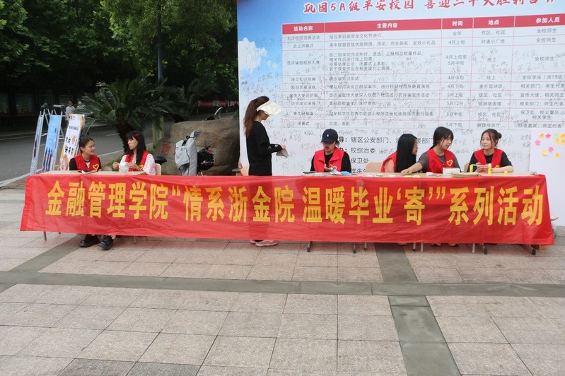 为帮助2022届毕业学子更轻便的离开校园,同时充分表达对母校与同学的留恋之情,金融管理学院于5月31日至6月3日在学校财通广场举办“情系浙金院,温暖毕业‘寄’”系列活动。