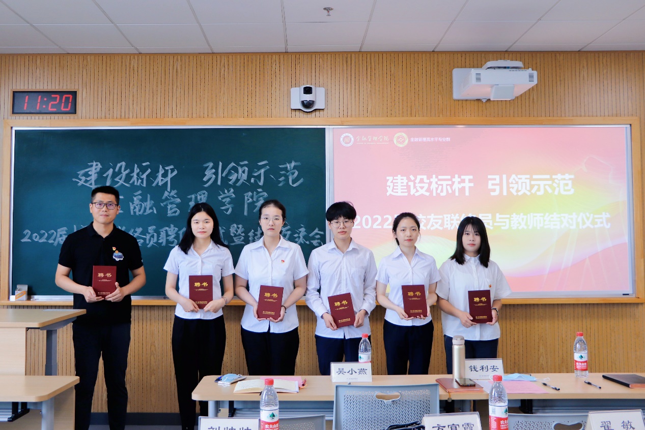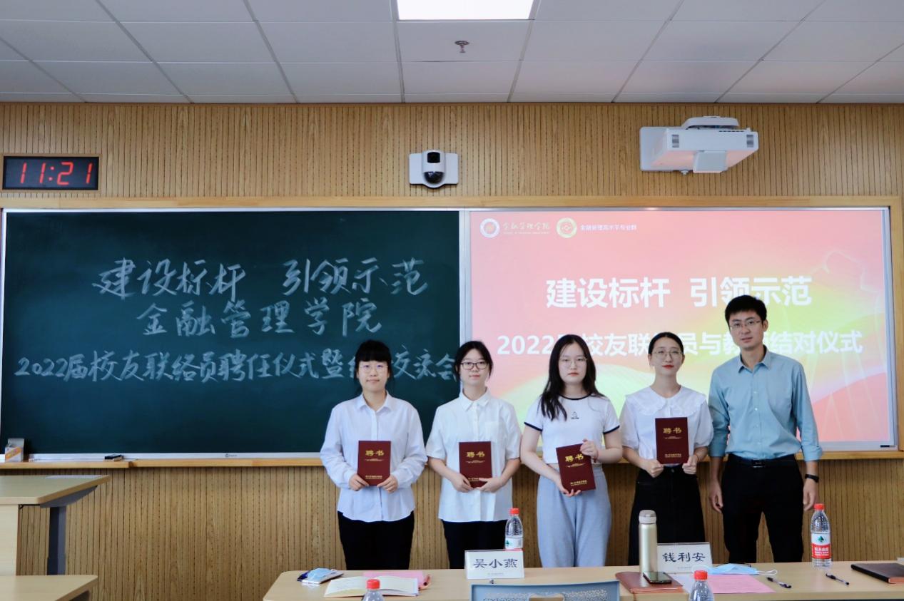 首先,由2022届班主任与班级校友联络员结对并颁发聘书。随后,2022届毕业班教师代表刘帅帅分享以下三点想法:一、校友是一张名片,是联系金融管理学院学子的桥梁。希望各位校友联络员传承学校“披沙拣金,融会贯通”的校训,积极弘扬金融工匠的精神;二、校友是一种责任。希望校友联络员们与学院携手打造具有金融特色的校友文化体系;三、校友文化在学习生活中均扮演重要角色,潜移默化影响学生职业选择,更是金融管理学子千日成长的沃土,希望全体毕业生学会感恩和馈赠。