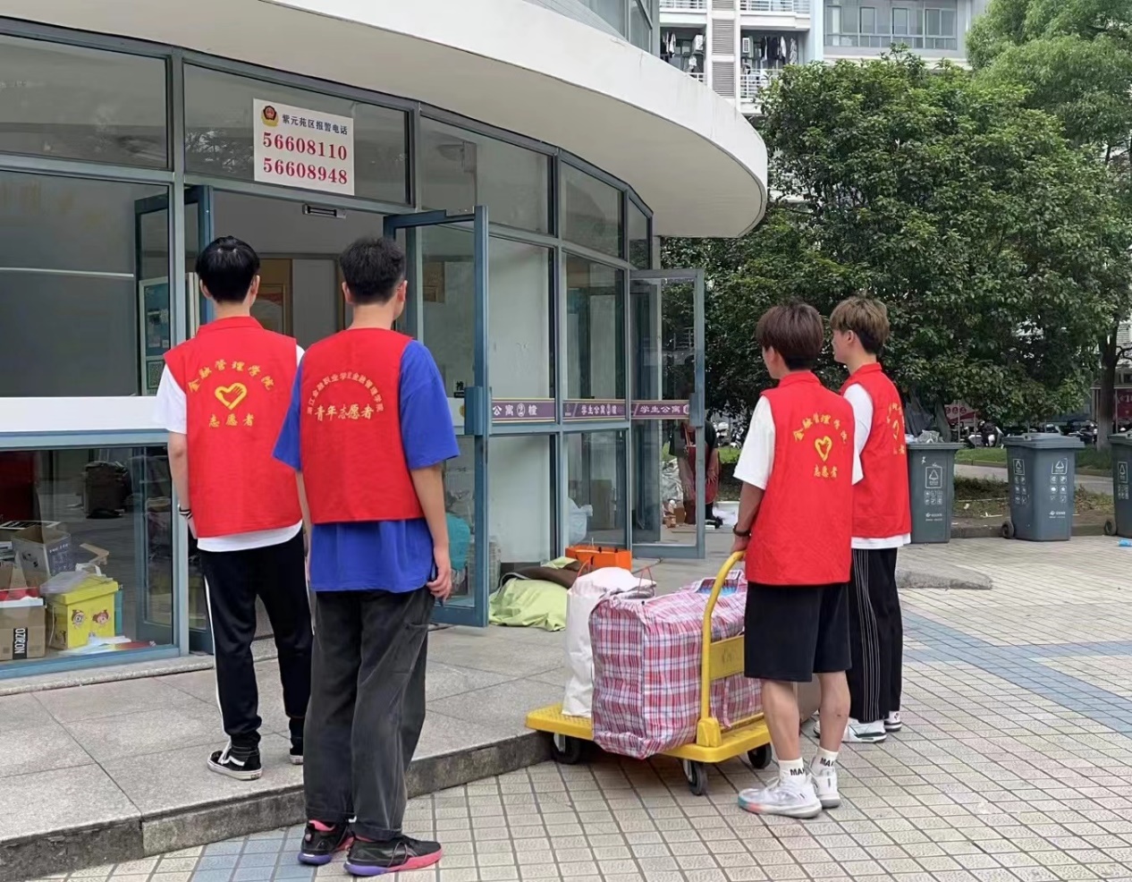 当初学长学姐们喜迎我们入校,今日我们便用实际行动送上诚挚的离校祝福。为了减轻学长学姐们行李的负担。在炎炎烈日下,我们每一位志愿者都认真负责的做好自己的工作,坚持不懈的把此次活动做到最完美。虽然汗水将我们的衣衫浸透,但依旧抵挡不了我们服务的热情,一件件红色马甲穿梭于寝室和校门口之间。虽然艰辛,但是听到学长学姐的“谢谢”二字,内心就觉得十分喜悦,这种喜悦是任何物质都无法满足的。最后祝福各位学长学姐愿此去经年,前程似锦,再相逢依旧如故,山河历尽,归来仍少年!