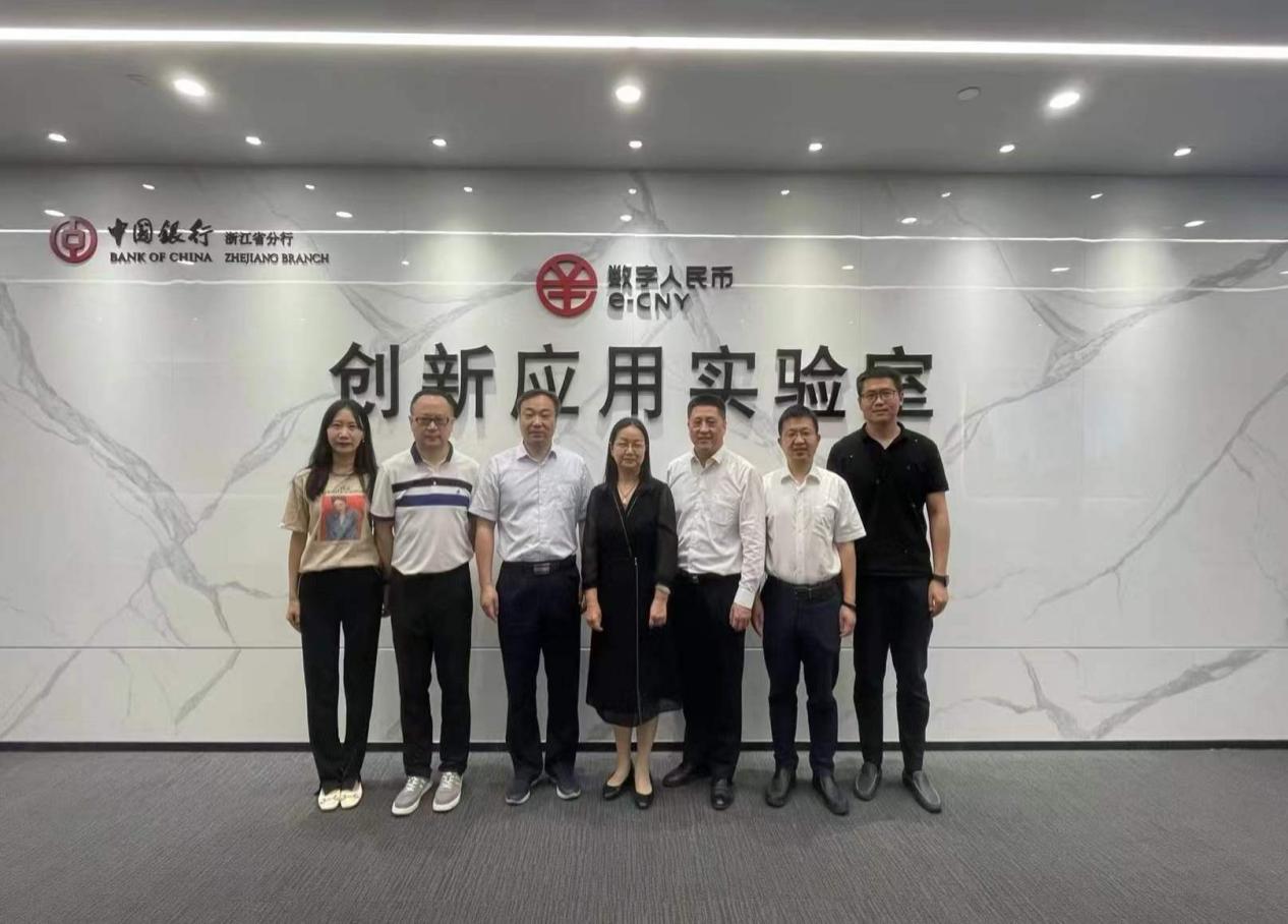 6月17日下午,金融管理学院院长董瑞丽带队赴中国银行数字人民币创新应用实验室就进一步深化校银合作,产教融合进行考察交流,中国银行浙江省分行行政事业机构部顾晓俊主任,中国银行浙江省分行数币办公室副主任许新文,中国银行浙江省分行数币办公室副主任吴晓梁,中国银行杭州市支行行政事业机构部副总经理胡笛等人陪同参观交流,金融管理学院副院长吴金旺,金融工程教研室主任史浩,金融服务与管理专业教师霍东星以及学院办公室等相关人员参加调研。