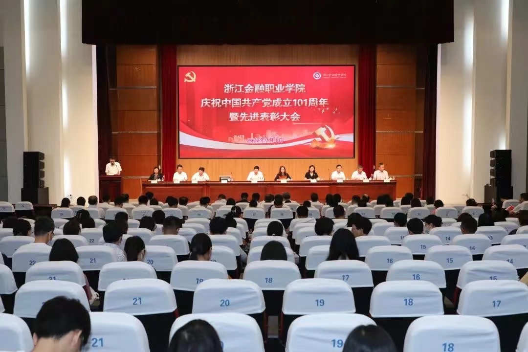 7月1日,浙江金融职业学院在明理报告厅隆重举行庆祝中国共产党成立101周年暨先进表彰大会。学校党政领导班子全体成员出席,全校党员教师参加此次大会。