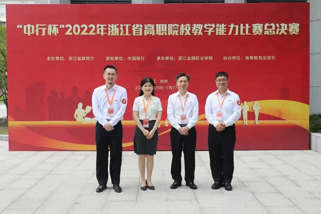 7月27日,由浙江省教育厅主办、浙江金融职业学院承办、中国银行股份有限公司浙江省分行冠名支持的“中行杯”2022年浙江省高职院校教学能力比赛在我校圆满落幕。我院教师吴国平、李宏伟、朱莉妍、应诚炜四位教师在本次比赛中荣获专业课程一组二等奖,比赛中以良好的姿态展示了我院教师积极向上的精神风貌。