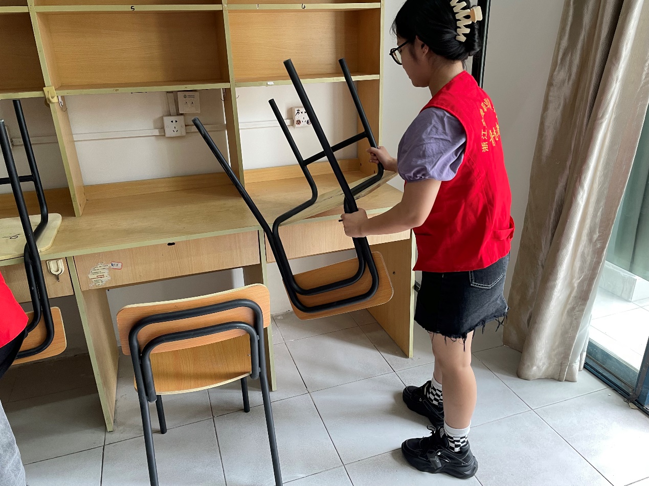 此次检查活动中,认真查看了2022级新生即将入住宿舍的床铺、桌椅等基本生活设施,详细检查了电源开关、插座等安全性,携带打扫工具将寝室进行简单除尘打扫。在过程中,魏老师与班助、辅助们强调要以高度的责任心,发挥“朋辈互助”精神,认真全面做好新生入学准备工作,确保新生有序入住,宿舍作为他们在大学的一个“家”,需要以实际行动落实“五心”“五好”理念,做到让学生安心,家长放心。