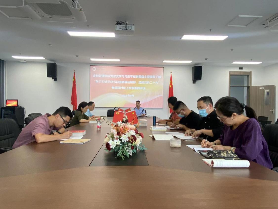 金融管理学院党总支理论学习中心组其他成员也相继分享了自己的学习体会并积极展开研讨,纷纷表示将继续深入学习习近平总书记在省部级主要领导干部“学习习近平总书记重要讲话精神,迎接党的二十大”专题研讨班上的重要讲话精神,进一步从中汲取力量,以实际行动献礼党的二十大。