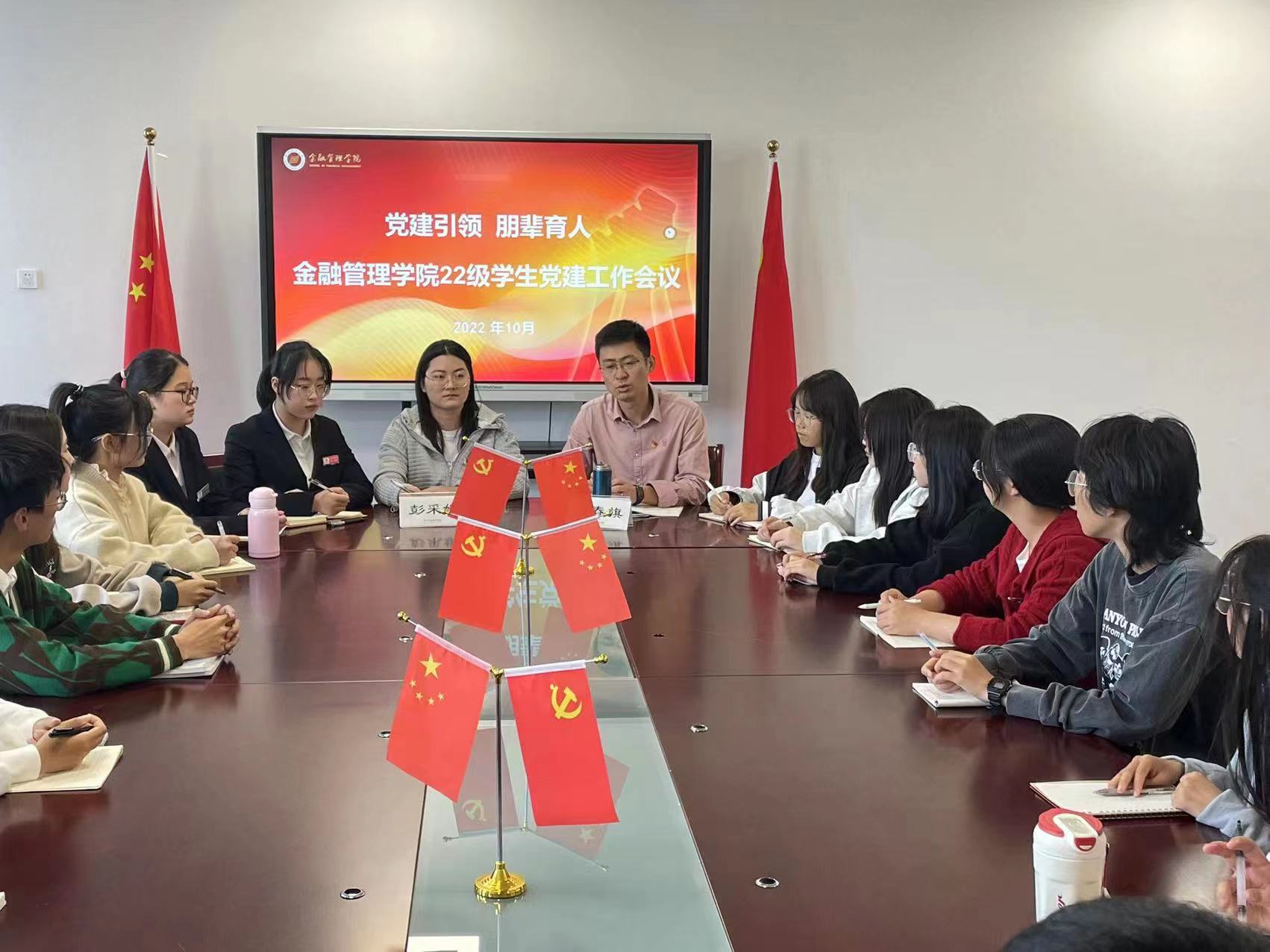2022年10月11日下午,金融管理学院党总支22级学生党建工作会议在泰隆大厦609会议室召开,金融管理学院党总支学工委员宋春旗,金融管理学院党总支党建组织员彭采婧,学院团总支副书记张秋韵,学院党员发展服务部负责人彭珺琦以及22级各班副团支书参加此次会议。
