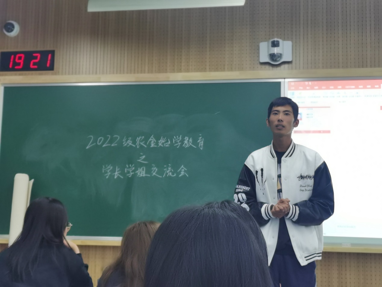 为加强农金专业各年级之间的交流,帮助新生更好地适应大学生活,明确学习目标,进行准确的自我定位,进一步提升学习专业知识的能力,金融管理学院农村金融专业于10月13日下午在7317教室开展2022级学生始业教育之学长学姐交流会。出席本次会议的有农村金融专业教研室主任王德英,农村金融专业20级、21级6位优秀学生代表以及22级全体同学。本次交流会由王德英主持。