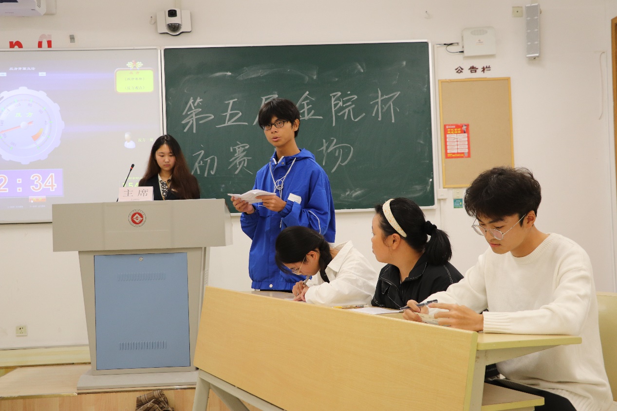 为培养学生的逻辑思考能力、语言表达能力以及团队协作能力,金融管理学院于10月16日17:40在8101教室举办第五届“金院杯”辩论赛初赛。参加本次辩论赛的有21级优秀辩手及22级各班代表。