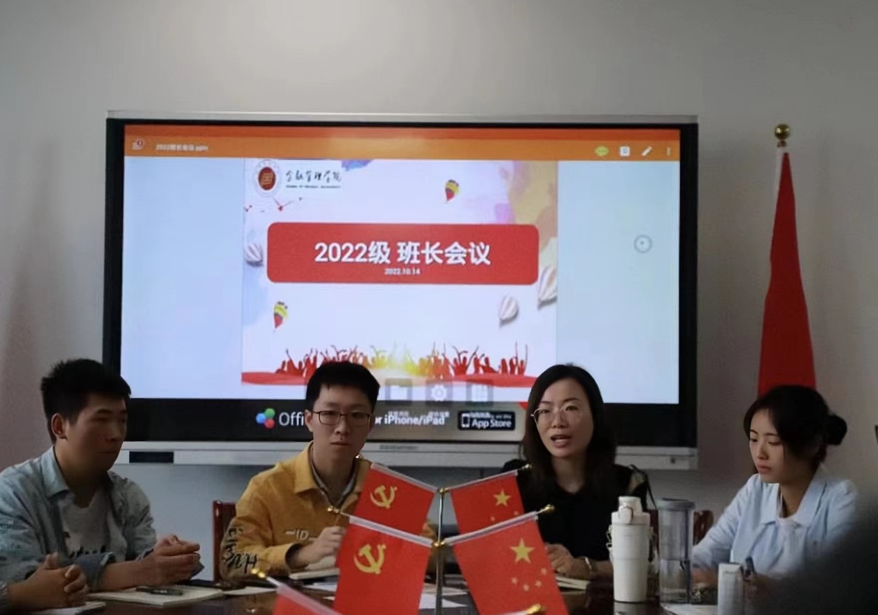 为切实落实学院各项规章制度,传达学院对学生的各项要求,加强学生管理和布置各项工作,进一步帮助2022级班长熟悉自身岗位,更好协助班主任管理班级,为班级同学起到良好的模范带头作用。金融管理学院于10月14日在泰隆609会议室召开了2022级班长会议,金融管理学院22级年级辅导员石书敏、魏孝钿以及金融管理学院22级全体班长参加此次会议。