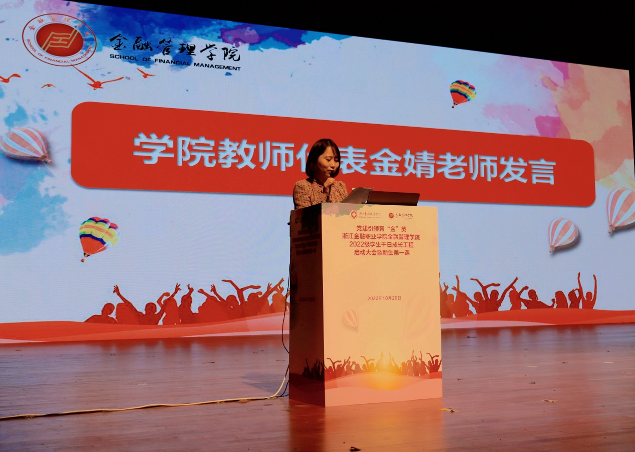 会上,学院金融管理与服务专业教研室副主任金婧作为22级新生班主任代表发言,她再次热烈欢迎22级同学们的到来。她表示,金院教师将秉持“尚德 精业 爱生”的教风,孜孜不倦教授知识与技能,协助掌握科学高效的学习方法,分享切实可靠的人生经验,为同学厘清思路、指明方向,给予坚定温暖的支持力量。新起点,新面貌,希望同学们能怀抱梦想、积极进取,做奋发有为的金融学子。