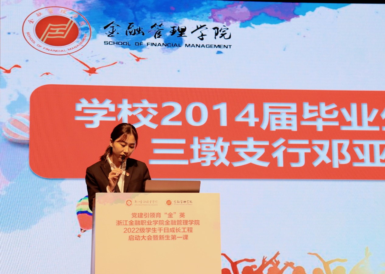 生逢盛世当不负盛世,生逢其时当奋斗其时。希望22级新生能传承“披沙拣金,融会贯通”的校训,传承“诚信、明理、笃行”的学风特色,以乐观向上的生活态度,朝气蓬勃的精神面貌,展现自我、超越自我。在浙江金融职业学院的千日成长工程中,在金融管理学院“金鹰引航 朋辈育人”的带领下,登上属于自己的舞台