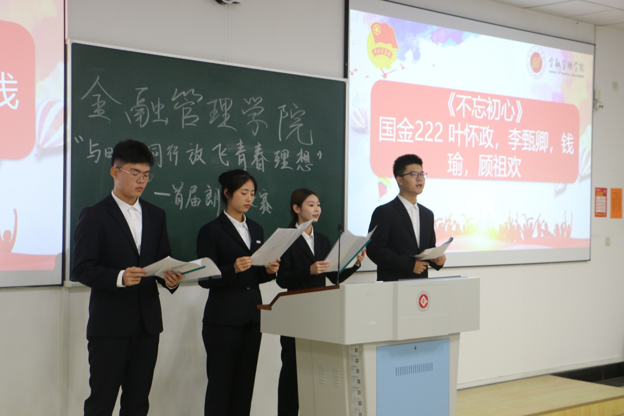 青年强则国家强,当代青年生逢其时,施展才干的舞台无比广阔,实现梦想的前景无比光明。此次比赛既培养了金院学子的口语表达能力,更增强了金院学子对于中华诗歌的文化自信。“最是书香能致远,腹有诗书气自华。”希望通过此次比赛在全体学生中掀起一股爱好朗诵的学习热潮,在“多读书、读好书”中积累过硬知识,在心灵上感受真、善、美的洗礼与熏陶,从而为我们的人生奠定厚实的文化底蕴。