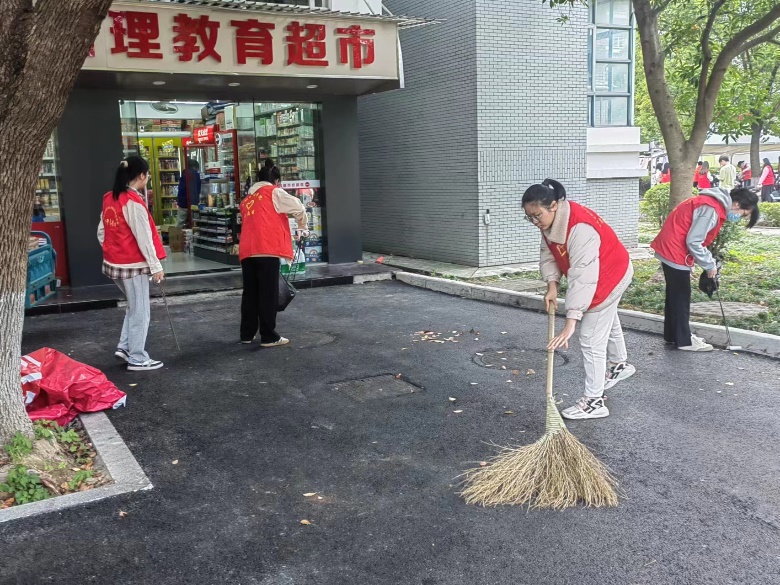 学院入党积极分子踊跃报名参加本次志愿服务活动,他们穿梭在桃李苑各个角落,清扫落叶、捡拾垃圾、整理自行车以及清理小广告,美化自己的“家园”。