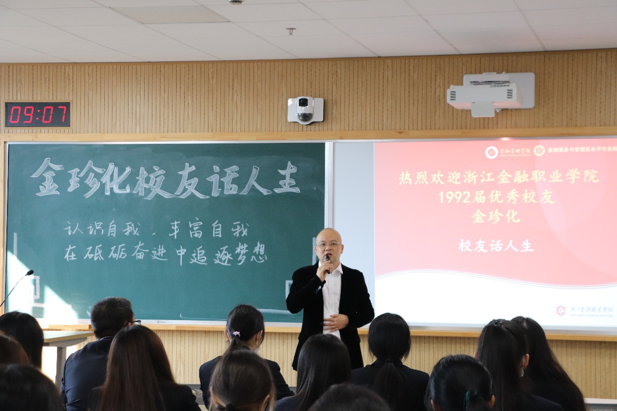 优秀校友在各个教室面向金融管理学院全体学生,围绕不同主题,采用不同形式进行校友话人生分享活动。他们回顾自己的大学时光,分享自己的工作经历,人生经验,剖析行业现状,给予学弟学妹们一系列建议,希望他们能对目前的就业形势加深了解,在大学期间做好合理的规划,制定明确的目标,同时不断磨练自身意志,强健自身体魄,提高职业素养,把握人生机遇,对标心仪行业标杆人物,积极发扬金院“朋辈育人”精神,致力于成为新时代金融工匠。