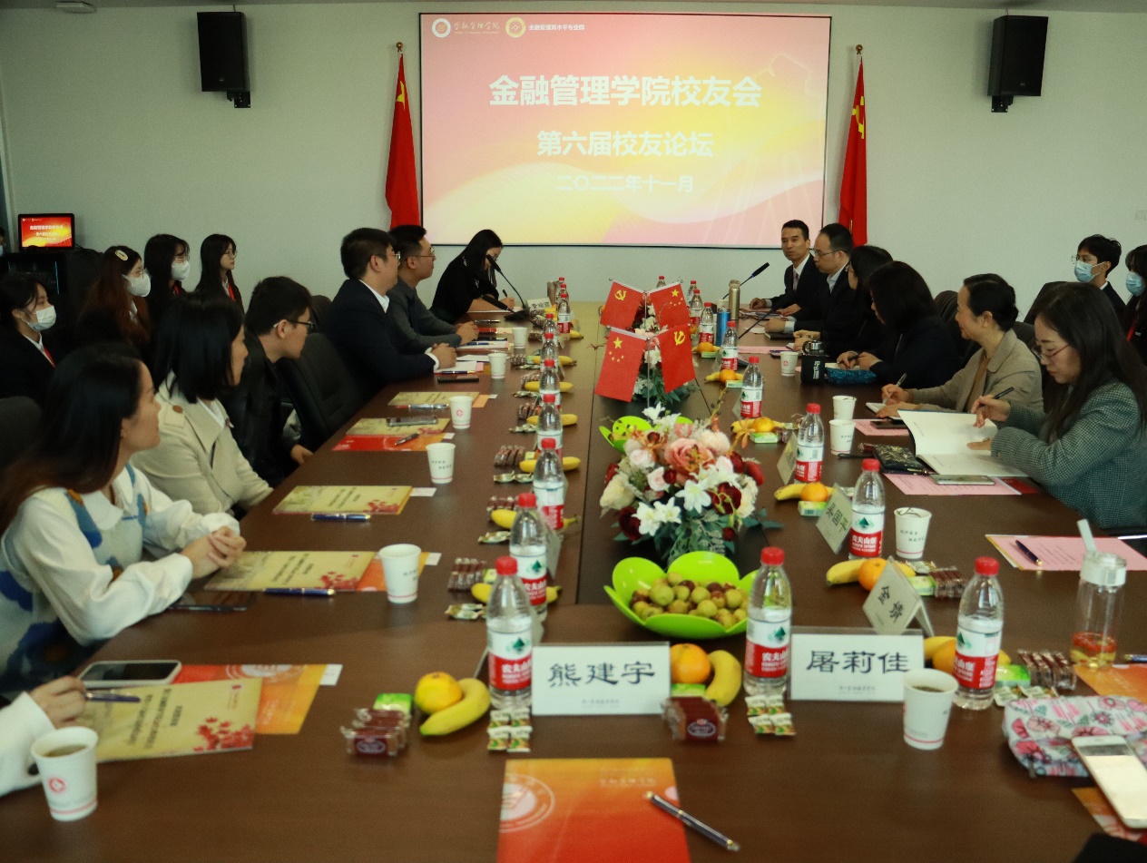 在分享会结束之后,校友们参加了金融管理学院校友会第六届校友论坛,在论坛上,金融管理学院院长董瑞丽与金融管理学院党总支书记、副院长钱利安致欢迎词,他们对校友的到来表示热烈的欢迎,对校友心系学校人才培养、关注母校发展表示由衷的感谢,会上强调了学校的“校友文化”,并围绕此次校友返校日活动展开详细介绍。希望通过此次座谈会探索人才培养新路径,提升学院育人质量,助力学校高水平职业大学建设,加深校企合作,为金融行业输送优质新时代技能型人才,助力社会经济发展。座谈会上,各个校友结合自身工作情况、自我学习情况、就业环境等方面展开分享,希望学弟学妹们注重自身综合素质的培养,终生学习意识的培养,提高抗压能力与抗挫折能力。