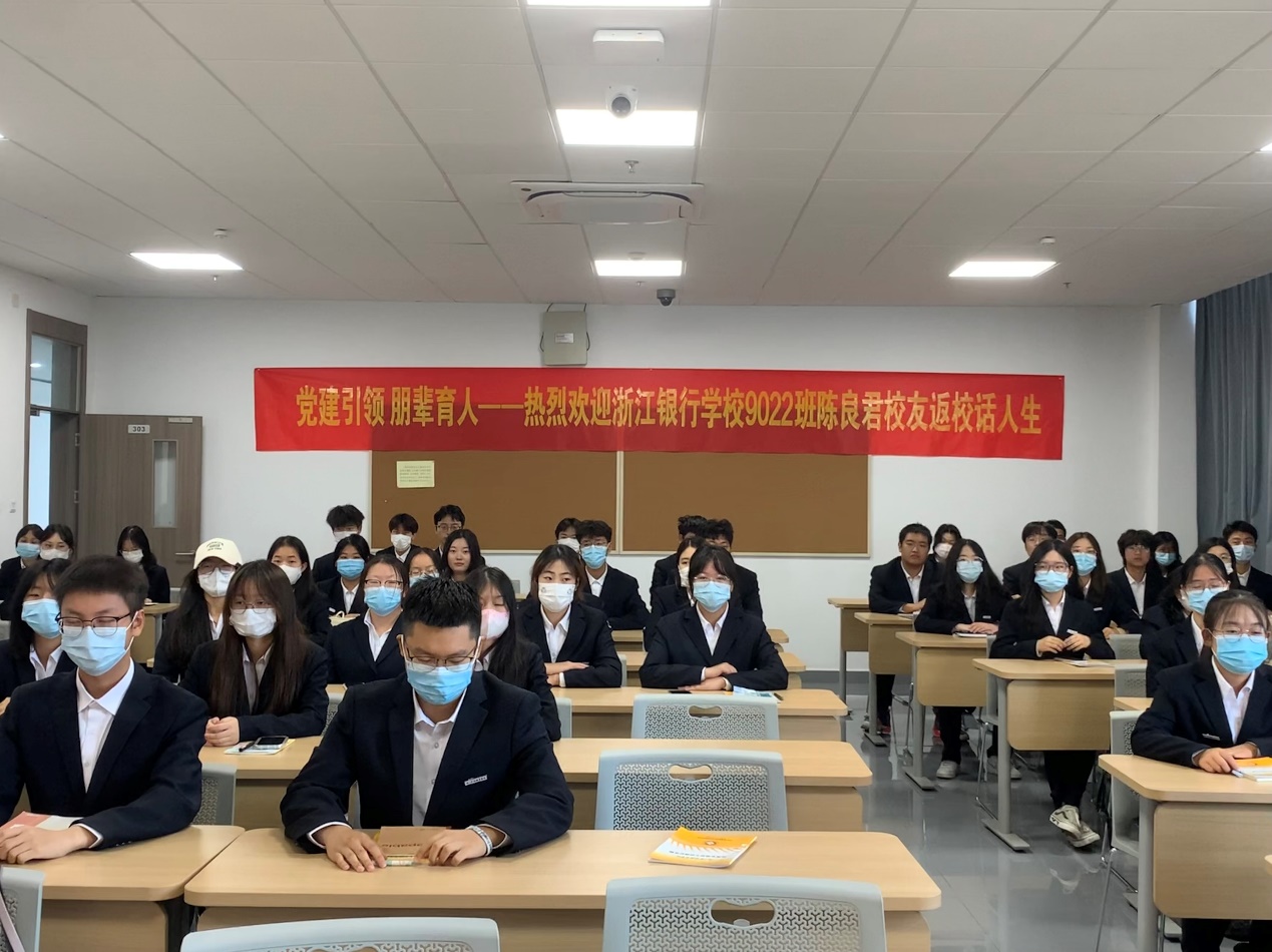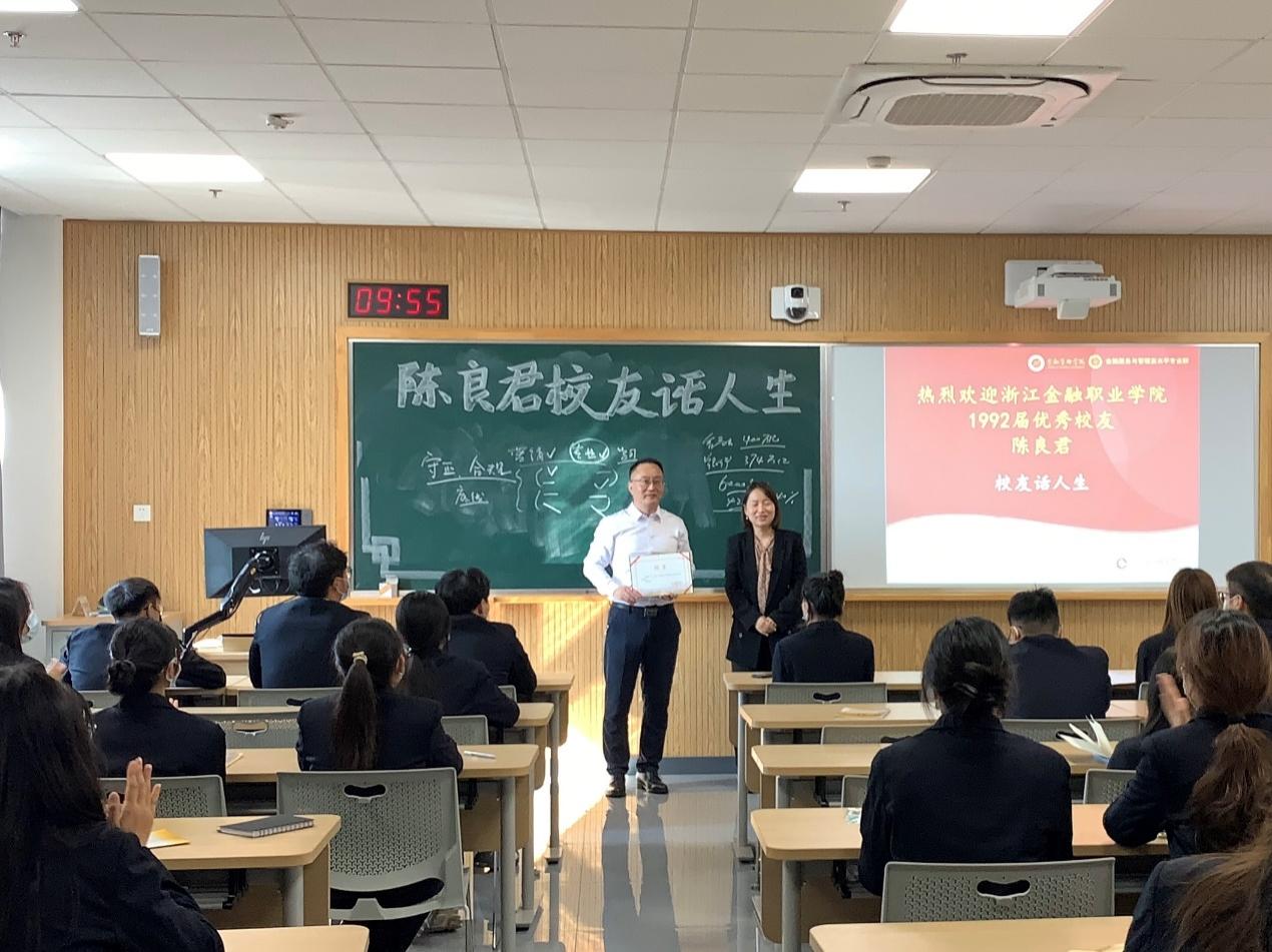 为帮助新时代金融青年走好金融新征程,开启自身奋斗人生。金融管理学院于11月5号上午,邀请学院优秀毕业生现工作于杭州银行舟山新城支行行长、党支部书记陈良君校友,在泰隆303教室开展了“金融征程,奋斗人生”为主题的校友话人生活动,学院学生参加此次活动。本场活动由学院金融服务与管理专业教研室副主任金婧主持。