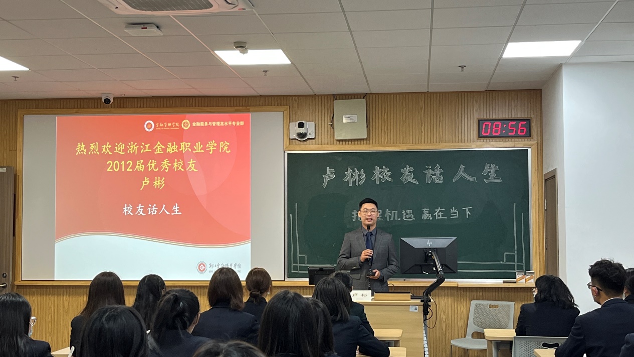 来而不可失者,时也;蹈而不可失者,机也。为让学子功在平时,赢得先机,放眼未来。11月5日上午金融管理学院有幸邀请到学院优秀校友现任长兴联合村镇银行吕山支行副行长卢彬于泰隆109教室围绕“把握机遇 赢在当下”的主题开展校友话人生活动,向在校学子分享学习工作经验。金融管理学院学生参加此次活动,本场活动由金融管理学院金融服务与管理专业副主任李宏伟主持。