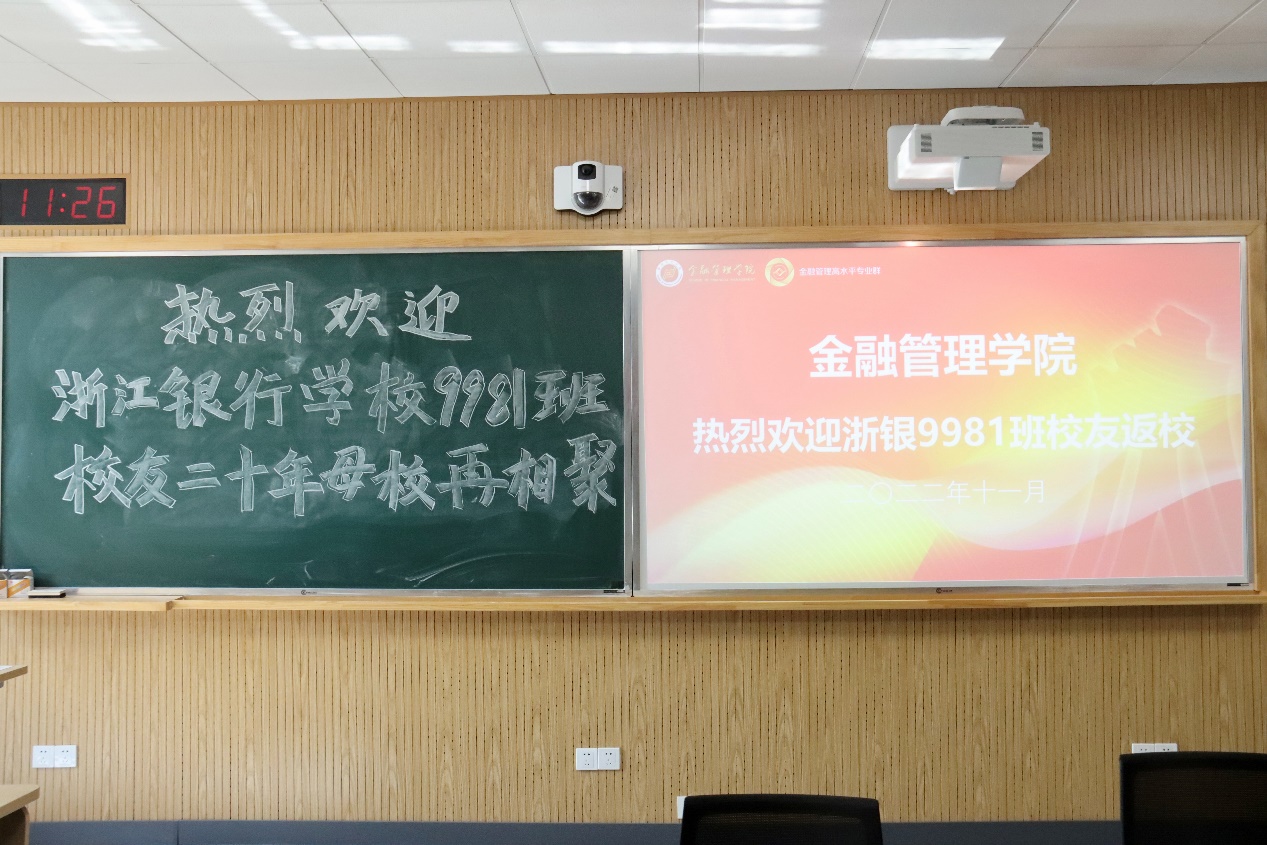 11月5日,浙江金融职业学院迎来了第47周年校庆。为更好关心关爱毕业校友,进一步加强学子与学校联系,金融管理学院诚挚邀请9981班毕业生返校,并于泰隆103教室召开班级座谈会,追忆往昔校园时光。