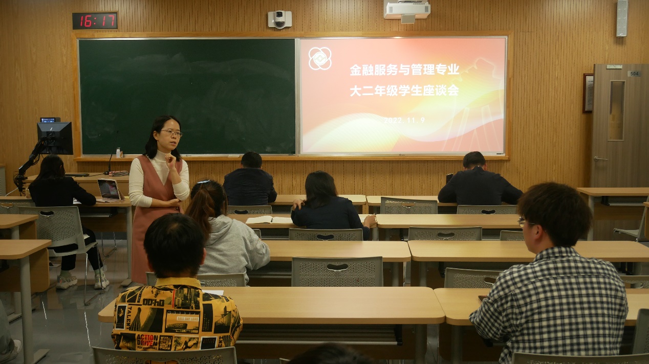 为及时了解学生学习、生活近况,积极主动发现并解决学生问题,进一步加强师生交流,促进师生关系和谐发展。金融管理学院于11月9日下午在泰隆503教室开展金融服务与管理专业大二学生座谈会,金融第二党支部全体老师以及金融服务与管理专业21级学生代表参加此次座谈会。本次会议由学院金融服务与管理专业教研室主任邱俊如主持。