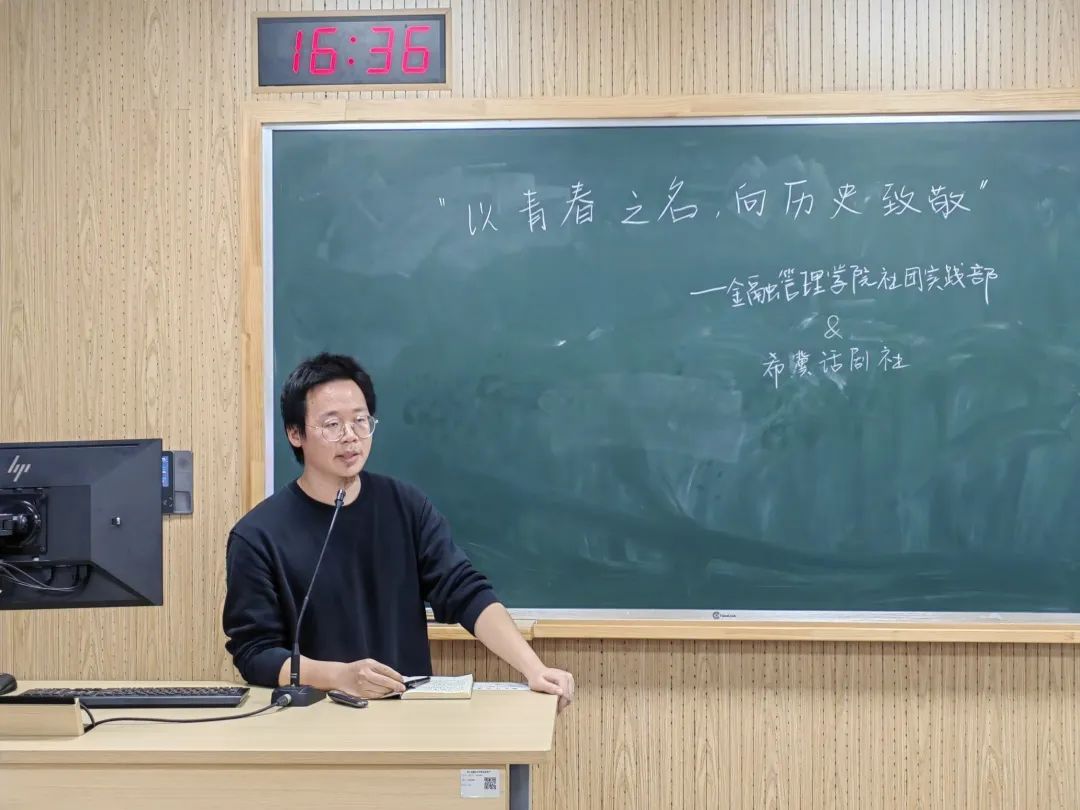 为活跃校园文化氛围,展现当代大学生积极向上的健康风貌,同时为提高学生综合素质和艺术修养,丰富课余文化生活,校希冀话剧社和金融管理学院社团实践部于11月9日下午在泰隆101举办了“以青春之名 向历史致敬”话剧剧本大赛赛前培训会议。希冀话剧社指导老师王子杭,金融管理学院学工办辅导员沈嘉辉,校希冀话剧社社长吴心慈,社团实践部负责人韦娟以及全体参赛团队代表参加此次活动。本次活动由叶怀政主持。