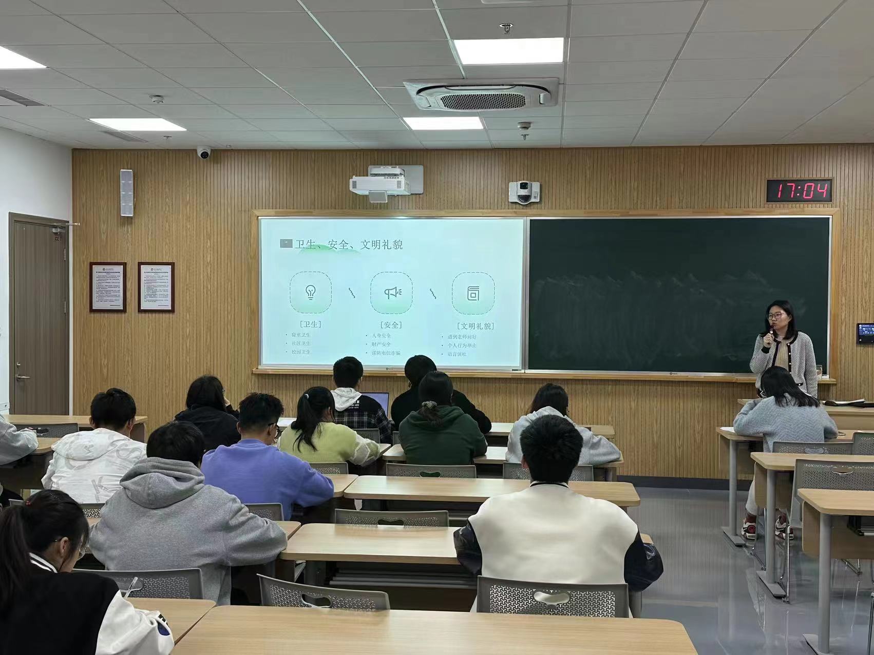 会上,围绕文明校园创建的各项工作展开详细讨论,就整洁校园、卫生校园、礼仪校园、诚信校园、无疫校园以及无诈校园各项行动进行细致剖析。会上强调,学生作为学校的一份子在养成良好的卫生习惯,做好寝室卫生同时,更要树立高度奉献意识,维护好社区卫生,进一步营造洁净、优美的校园环境。同时,关注疫情动向与通知,严格遵守学校规章制度,落实好学校学院制定的管理条例,明确自身为个人安全与健康的第一责任人,提高防诈反诈意识与辨别是非能力,保障自身人身与财产安全。会上表示,稳定安全、整洁优良的校园环境有利于打造优良的学风,希望各位班长积极带动班级同学严肃课堂纪律,珍惜自习时间,学习绿色校园知识;平日里注意言行举止,积极主动问好,争做新时代好青年。