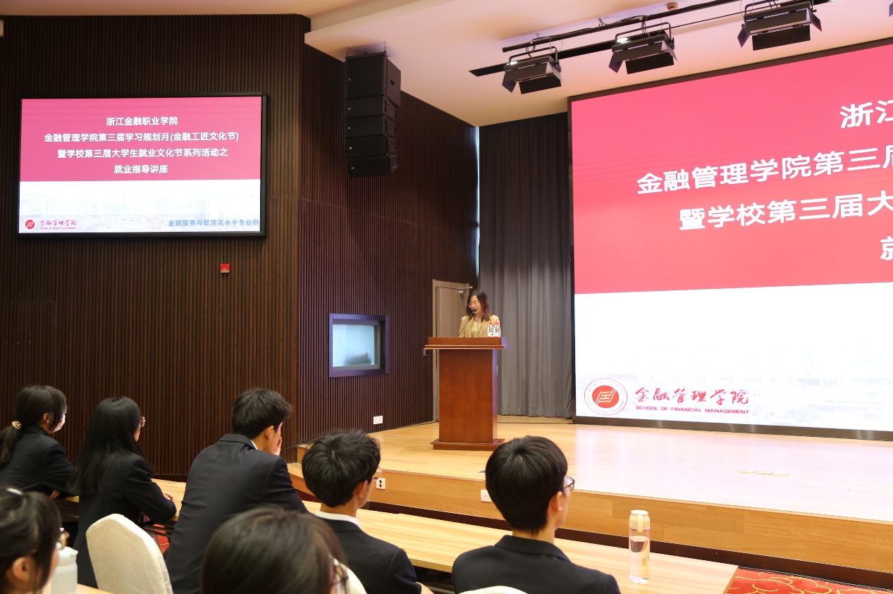 为更好地帮助学子们规划职业生涯目标,找准自我定位,解答有关就业方面的困惑,进一步帮助同学们树立正确的就业观和择业观,了解就业形势、就业政策,调整择业、就业心态,提高自身就业技能。近日,金融管理学院举行第三届学习规划月(金融工匠文化节) 暨学校第三届大学生就业文化节系列活动,邀请浙江稠州商业银行人力资源部副总经理王梓旭,围绕“大学生职业规划指导”向学院21级与22级全体学生分享求职与工作经验。本场讲座由金融管理学院22级辅导员石书敏主持。