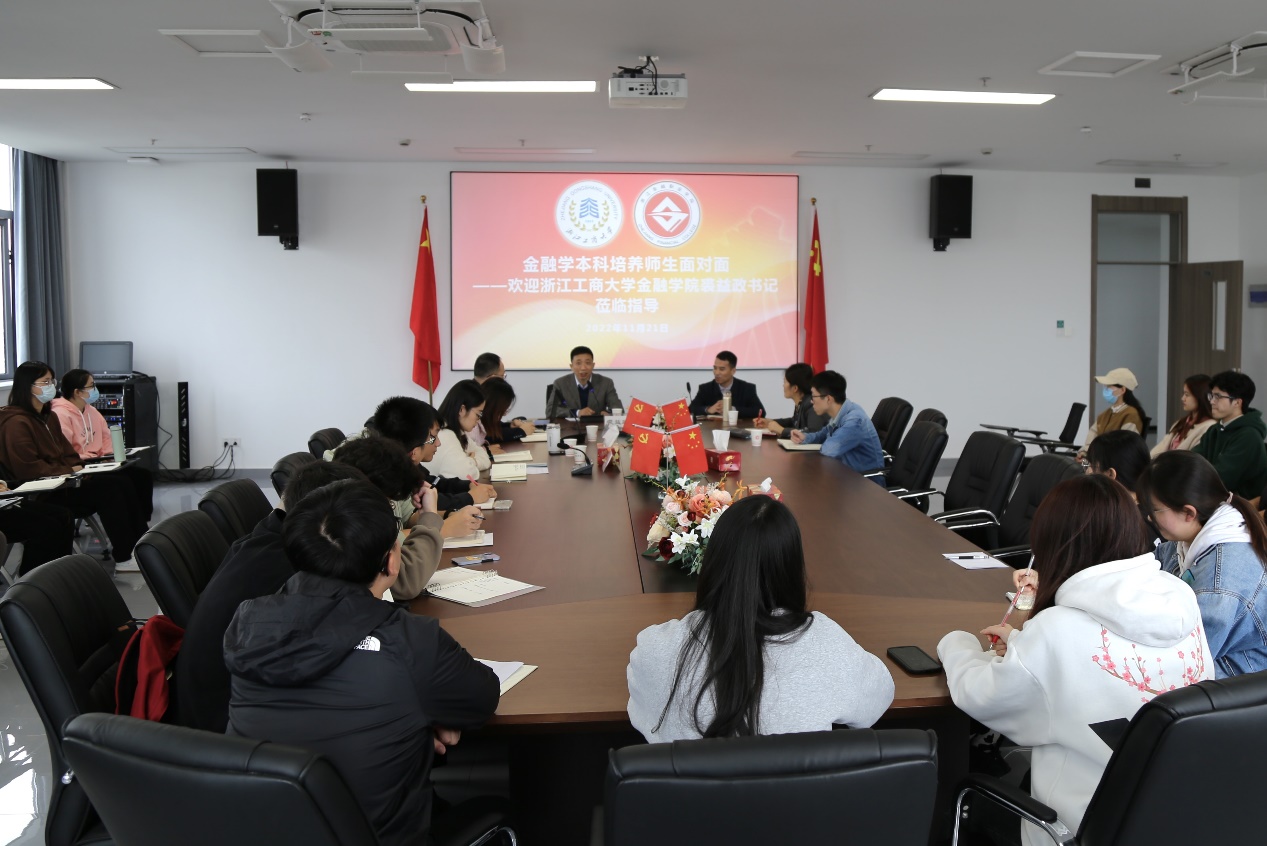 为积极响应学校“深化爱生节”系列活动要求,落实“立德树人”的根本任务,践行“以生为本”的办学理念,为使联合培养学生能更好健康成长优质发展,更加清晰学业发展规划和职业方向、路径。11月21日下午金融管理学院在泰隆718会议室,召开金融学本科联合培养师生面对面座谈会。浙江工商大学金融学院党委书记裘益政,浙江金融职业学院金融管理学院党总支书记、副院长钱利安,学院副院长凌海波,学院党总支副书记吴小燕,学院学工办22级年级辅导员石书敏、魏孝钿,金融学22级本科班班主任赵兰及金融学22级本科生参加此次座谈会。本次会议由凌海波主持。