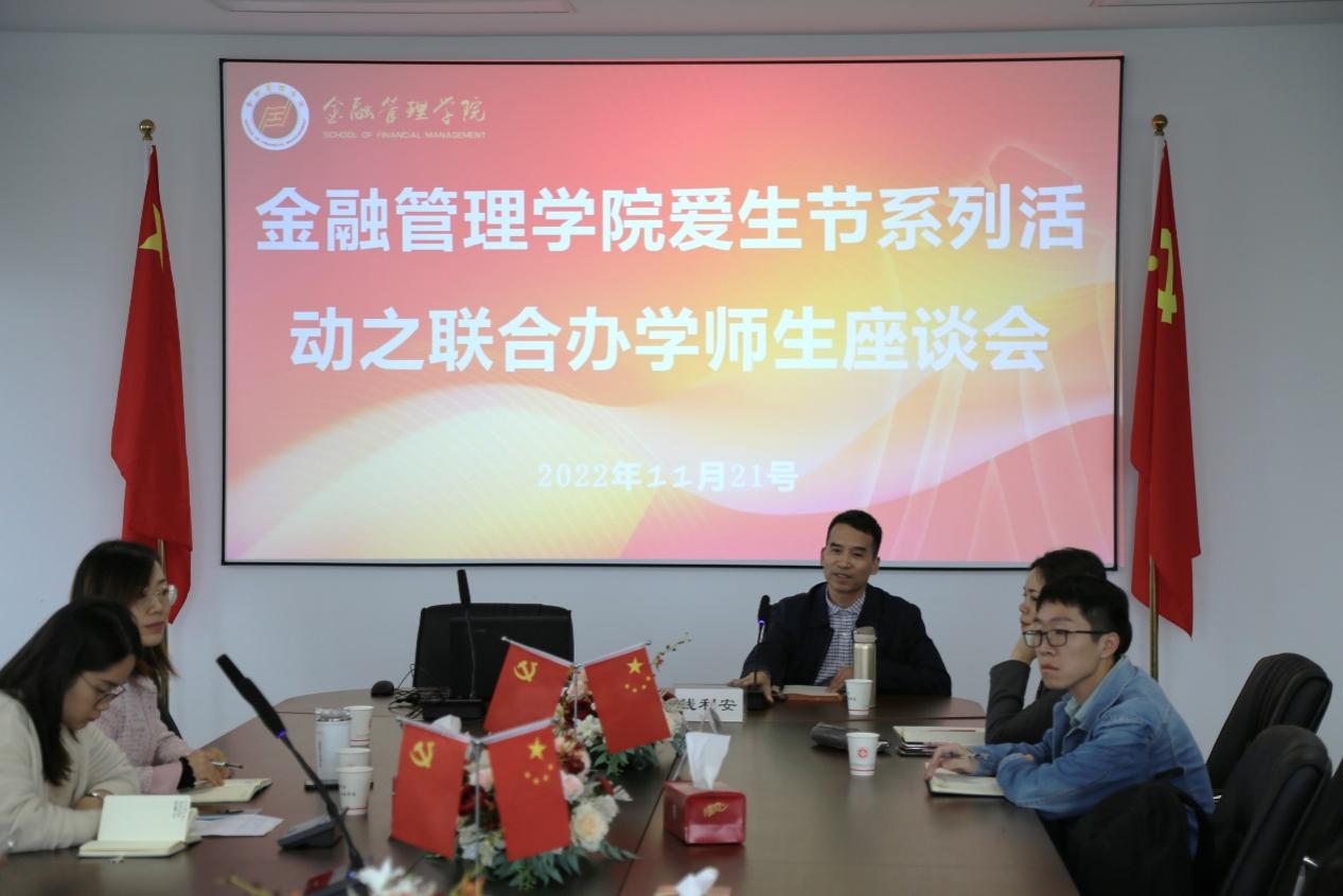 钱利安表示,2022年是学校第十二个“深化爱生节”,此次座谈会的召开是进一步落实以生为本办学理念,深化学校“三关”工作体系的重要路径与载体,希望与会教师把爱生理念融入日常教育教学工作中,体现在关心学生日常生活、工作与学习中,同时希望金融学同学结合自身学习、生活和工作所需畅所欲言,共同打造学生、教师、学校发展共同体,以确保同学们的全面发展和优质成才。