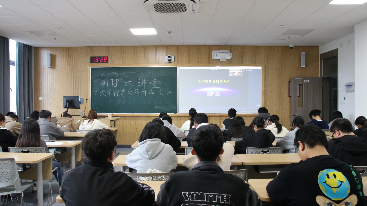 为帮助学生更好适应大学生活,丰富自己的精神世界,在精神上成人。金融管理学院于11月23日下午在泰隆305教室开展明理大讲堂活动。此次活动主讲人为湖州学院党委书记朱斌老师,金融管理学院22级全体学生参加此次讲座。本次讲座由明理学院杜鹃教授主持。