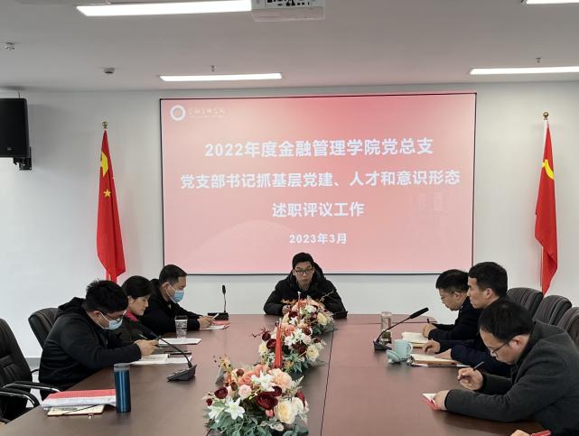 为夯实支部书记抓基层党建主体责任,着力发挥党建引领作用,3月1日,金融管理学院党总支于泰隆718会议室召开 2022 年度党支部书记抓基层党建、人才和意识形态述职评议工作会。金融管理学院党总支委员、支部书记等参加会议。会议由金融管理学院党总支书记钱利安主持。