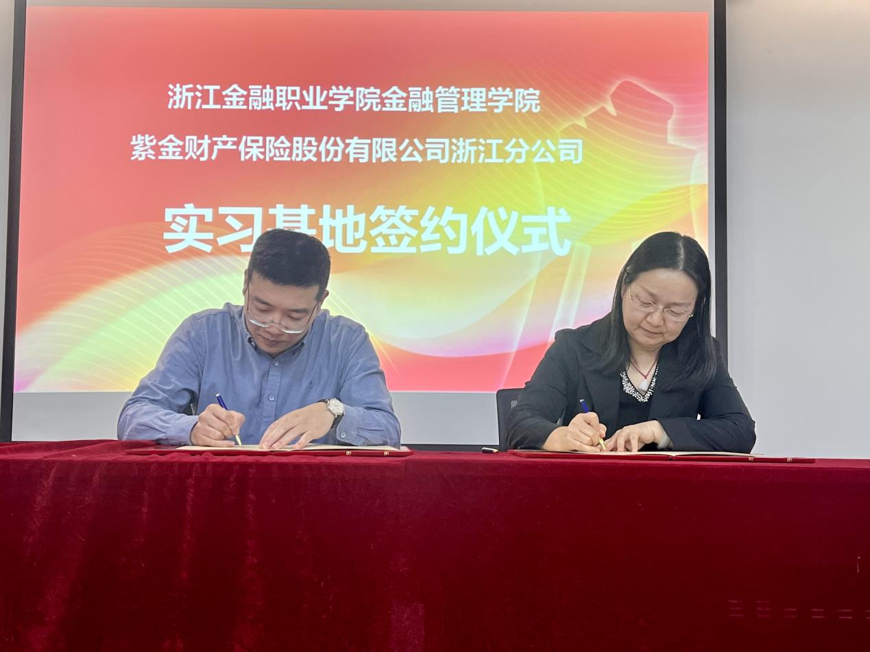 会上,金融管理学院与紫金财产保险股份有限公司浙江省分公司就共建实习实训基地达成意向并签约。