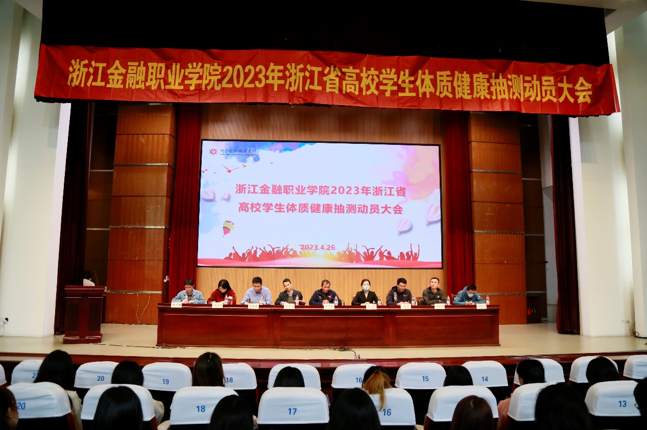 为提高金融管理学院学子对体质健康测试的重视程度,提升科学锻炼的意识,进一步增强我院学子身体健康素质,金融管理学院于4月26号下午在明理报告厅举办2023年体质健康抽测动员大会。浙江金融职业学院体委副主任、体军部主任翁惠根,金融管理学院党总支书记、副院长钱利安,学院党总支副书记吴小燕,学校体军部教师靖庆磊、李涛、张和平,学院各班班主任,学院学工办全体辅导员以及学院全体参与抽测学生参加此次动员大会。学院学工办副主任宋春旗主持此次活动。