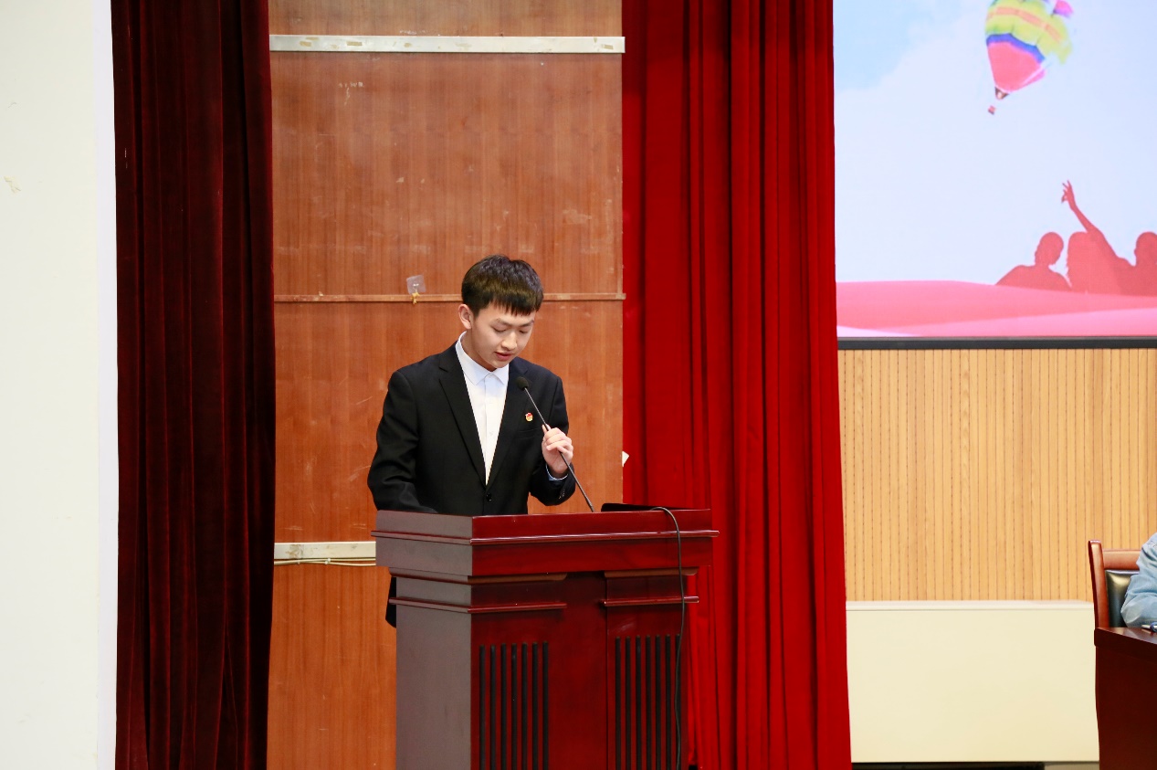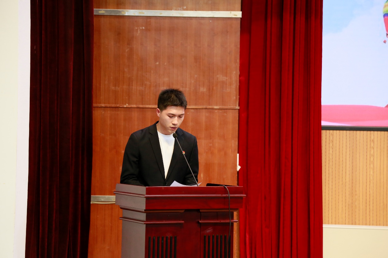 学生会体育部代表、金科212班赵赞代表全体工作人员发表,他强调了体育锻炼的意义,并呼吁大家,在思想上重视本次体质测试,行动上落实锻炼,共同向学校交出一份满意的答卷。然后他代表全体工作人员保证,努力做好后勤保障工作,为抽测活动顺利进行做好铺垫。
