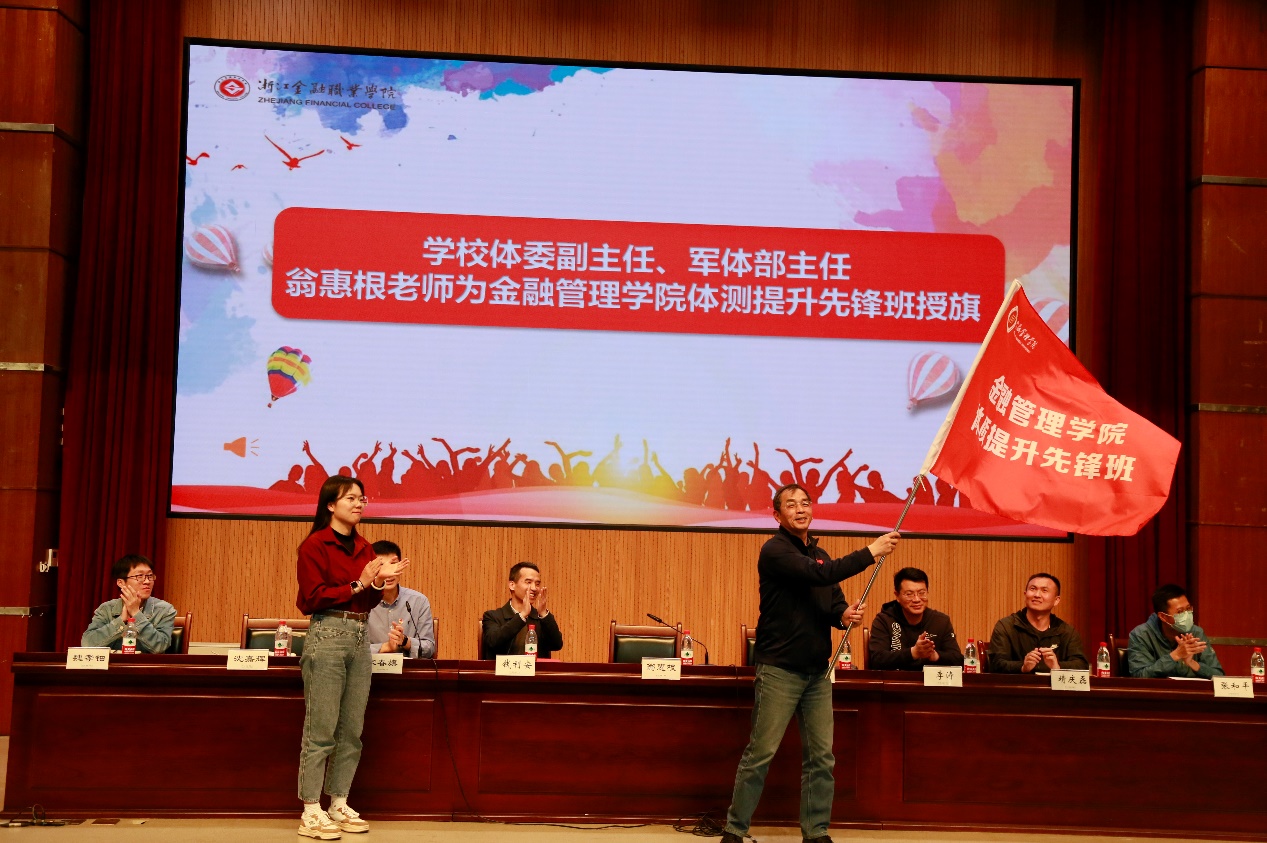 最后以翁惠根为金融管理学院体测提升先锋班授旗结束抽测动员大会活动。“时不我待,只争朝夕”本次动员大会活动极大提高学子参与抽测的积极性,鼓励学子为学校发展和建设做出积极贡献,有助于学生健全自身体魄及追求更高的自我目标。