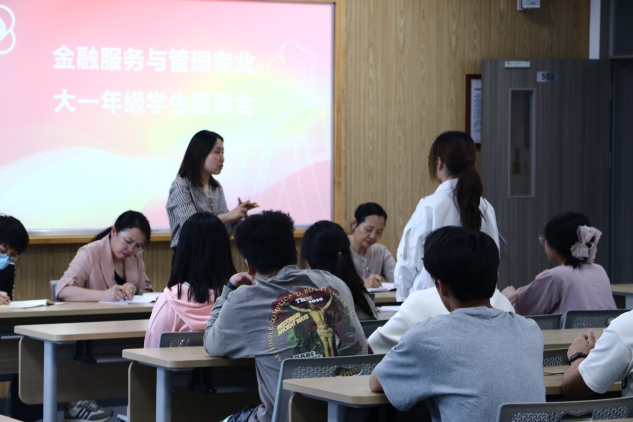 为帮助学生们解决在校学习生活中所遇到的难题,明确未来发展规划,助力学生优质成长成才,金融管理学院于5月10日下午在泰隆501教室召开金融服务与管理专业22级学生座谈会,金融管理学院金融服务与管理专业教研室教师与金融服务与管理专业22级各班学生代表参加此次座谈会。本次座谈会由金融服务与管理专业教研室副主任金婧主持。