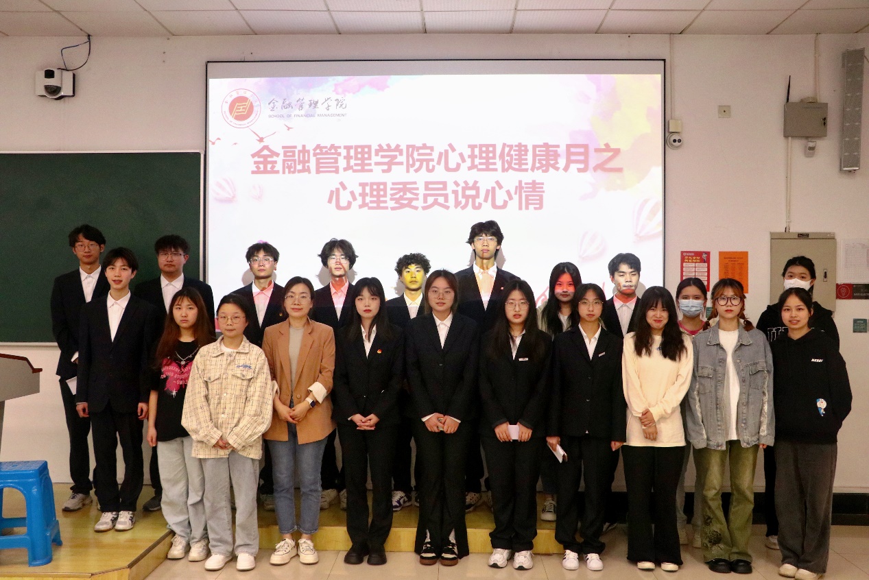 为提升心理委员的心理自助与助人能力,提高学院心理委员履职能力,金融管理学院于5月24日晚在8219教室举办“心理委员说心情活动”。参加本次活动的有金融管理学院学工办辅导员石书敏,学院团总支学生会主席团成员郭琳琪、项佳露、卢佳莹、刘锶莹,心扉心理协会陈雯雯以及学生心理健康服务中心岳琪以及全体大一心理委员。