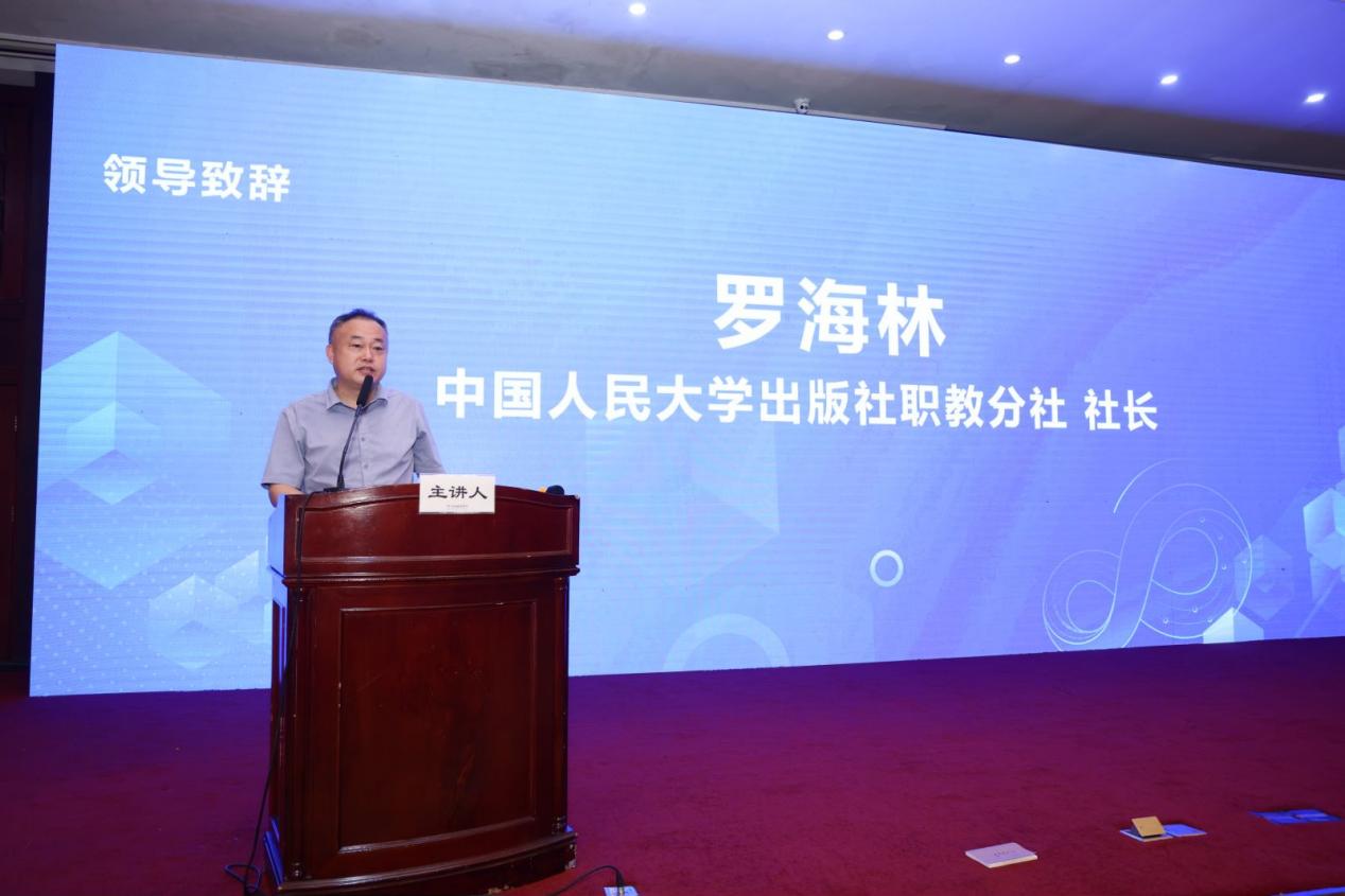 中国人民大学出版社职教分社社长罗海林发表了题为“教育数字化与数字教材建设”的主旨演讲,他分别从教育数字化:赋能与提质、数字教材:教育数字化的一个实践路径和助力职业院校数字教材建设三个方面展开。