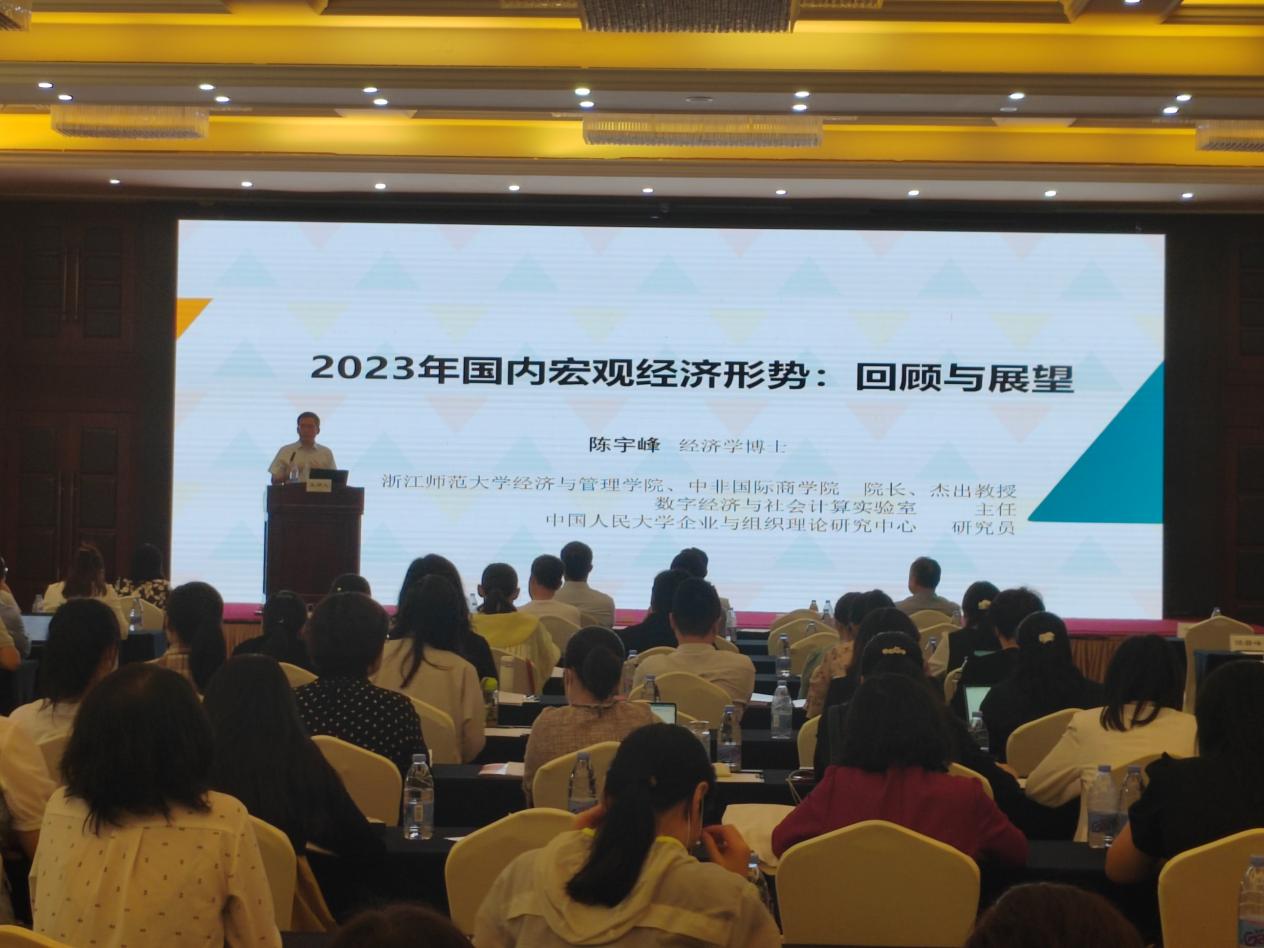浙江师范大学经济与管理学院陈宇峰杰出教授发表了题为“2023年国内宏观经济形势:回顾与展望”的主旨演讲,分别从2023年上半年国内宏观经济总体回顾、2023年下半年国内经济形势展望、海外经济情况三个方面展开。
