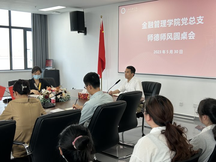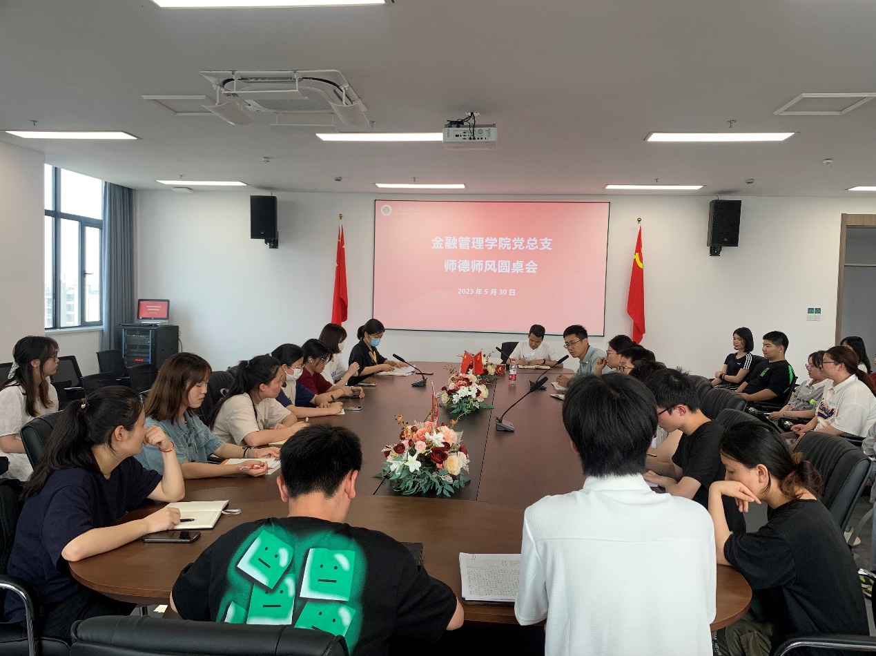 为进一步推进学院党总支师德师风专项整治工作,加强师德师风建设,全面落实立德树人根本任务,切实了解学生期望与实际诉求。金融管理学院党总支于5月30日下午在泰隆718召开师德师风圆桌会,金融管理学院党总支书记、副院长钱利安,学院党总支副书记吴小燕,学院学工办全体教师以及金融管理学院各班学生代表参加本次会议。本次会议由金融管理学院团总支书记、学工办副主任宋春旗主持。